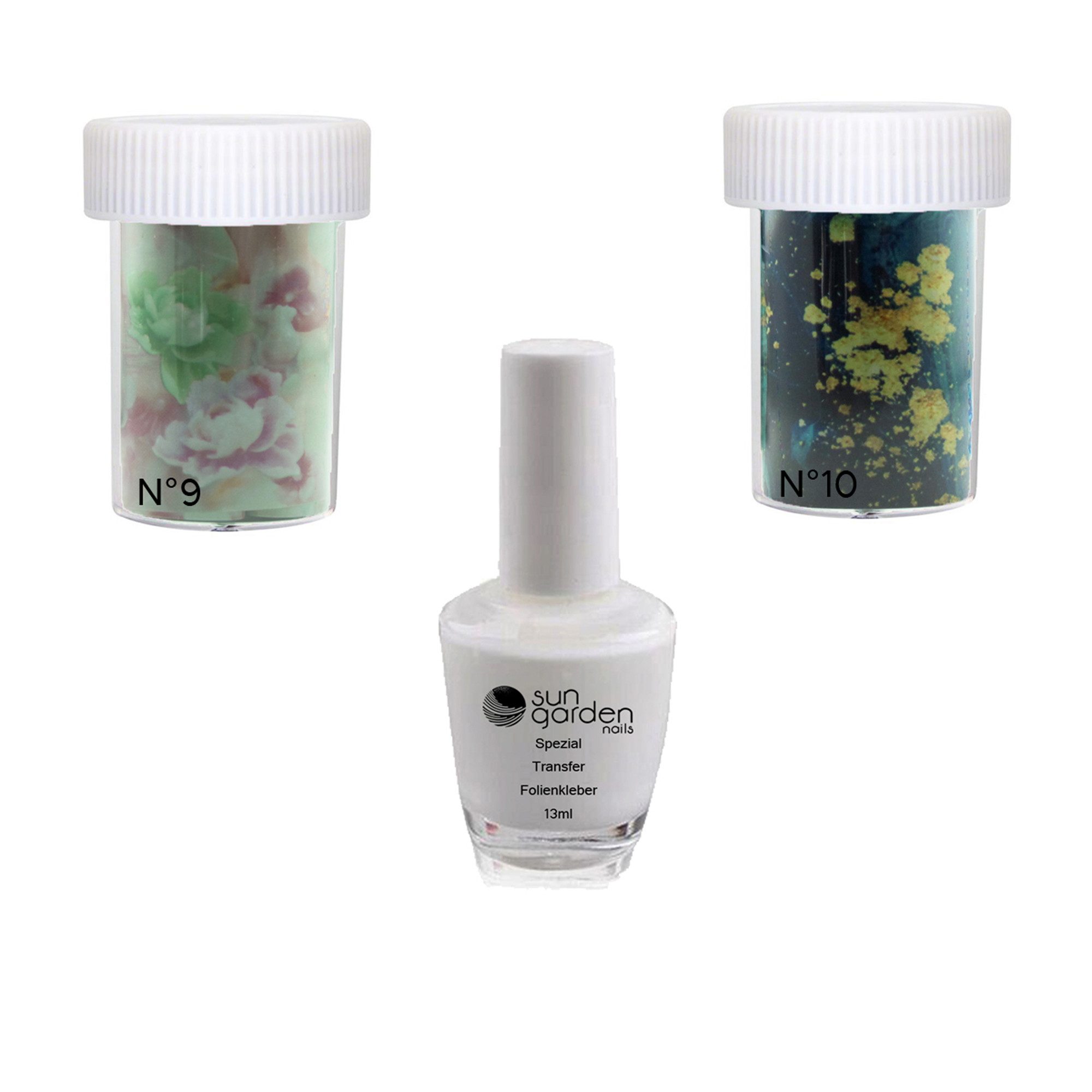 MARBLE SET 4 – Nailart Set: 2x Transfer Nagelfolie + Spezialkleber (13 ml) Mit dem MARBLE SET 4 von Sun Garden Nails bringen Sie künstlerische Marmor-Designs auf Ihre Nägel – modern, individuell und einfach umzusetzen. Die beiden Transferfolien im Set bieten strukturreiche Muster in sanft verlaufenden Farbkombinationen und machen jedes Nageldesign zu einem Hingucker. Dank der hochwertigen Verarbeitung sind die Transferfolien extrem dünn und schmiegen sich beim Andrücken perfekt an die Nagelform an. In Kombination mit dem 13 ml Spezial-Folienkleber erzielen Sie optimale Haftung auf Acryl- und Naturnägeln. Bei Gelnägeln kann die Folie direkt in die Schwitzschicht gedrückt werden – ganz ohne zusätzlichen Kleber. Die Folien sind ideal für Fullcover-Looks, Frenchspitzen oder gezielte Nailart-Motive. Schneiden Sie die gewünschte Form einfach aus den 150 x 4 cm großen Folienstücken und bringen Sie Ihre Ideen schnell auf den Nagel. Für längere Haltbarkeit und Glanz empfehlen wir die Versiegelung mit UV-Gel oder Topcoat. Inhalt: 2x Transferfolie je ca. 150 cm x 4 cm 1x Transferfolienkleber 13 ml Vorteile: Trendige Marmordesigns in sanften Farben Ideal für alle Nageltypen – Gel, Acryl & Natur Schnell und einfach anzuwenden Effektvoll & langanhaltend mit Topcoat Für kreative Kombinationen geeignet