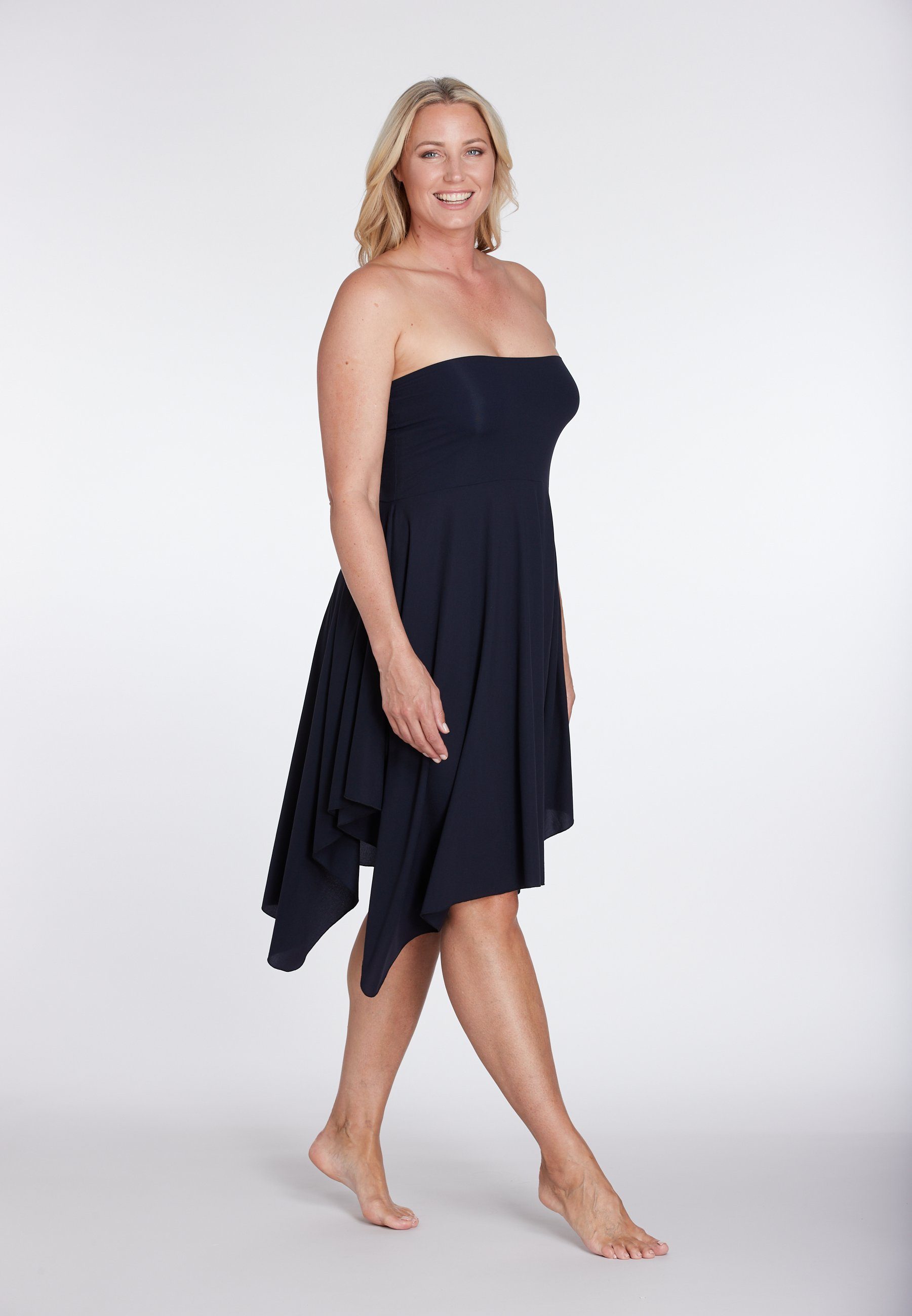 Sunflair Damen Rock - anpassbares und multifunktionales Bandeaukleid - lockeres und klassisches Strandkleid - luftiges und trägerloses Maxikleid Dieser Multistyle-Rock mit zipfeligem Saum ist ein wahres Multitalent. Tragbar als wadenlanger, weitschwingender Rock, als Bandeau-Strandkleid mit knieumspielender Довжина oder als Cape. Dank des Umschlagbundes lässt sich der Multistyle-Rock im Handumdrehen verwandeln.
