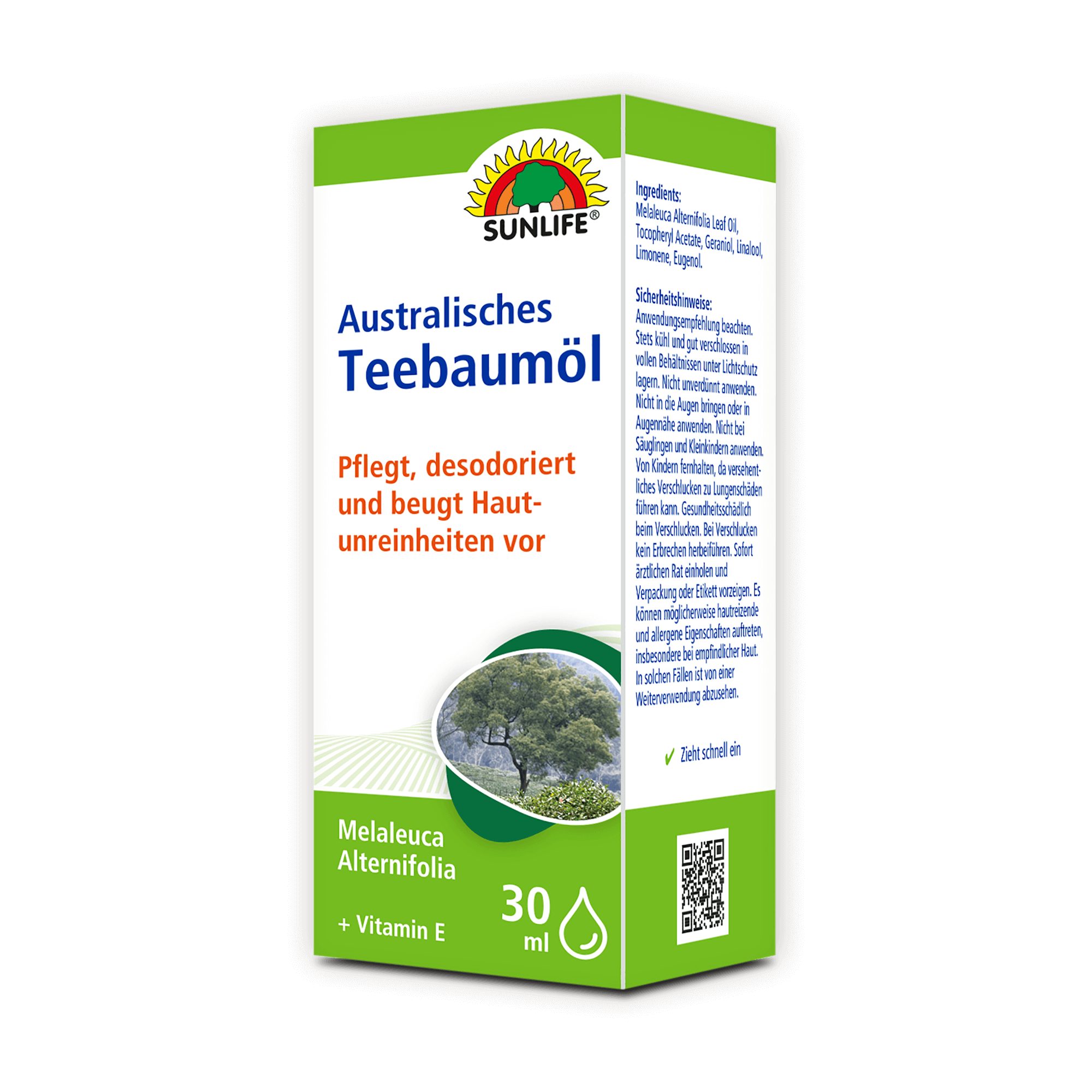 SUNLIFE® Australisches Teebaumöl mit Vitamin E zieht schnell in die Haut ein und ist vielseitig anwendbar.
