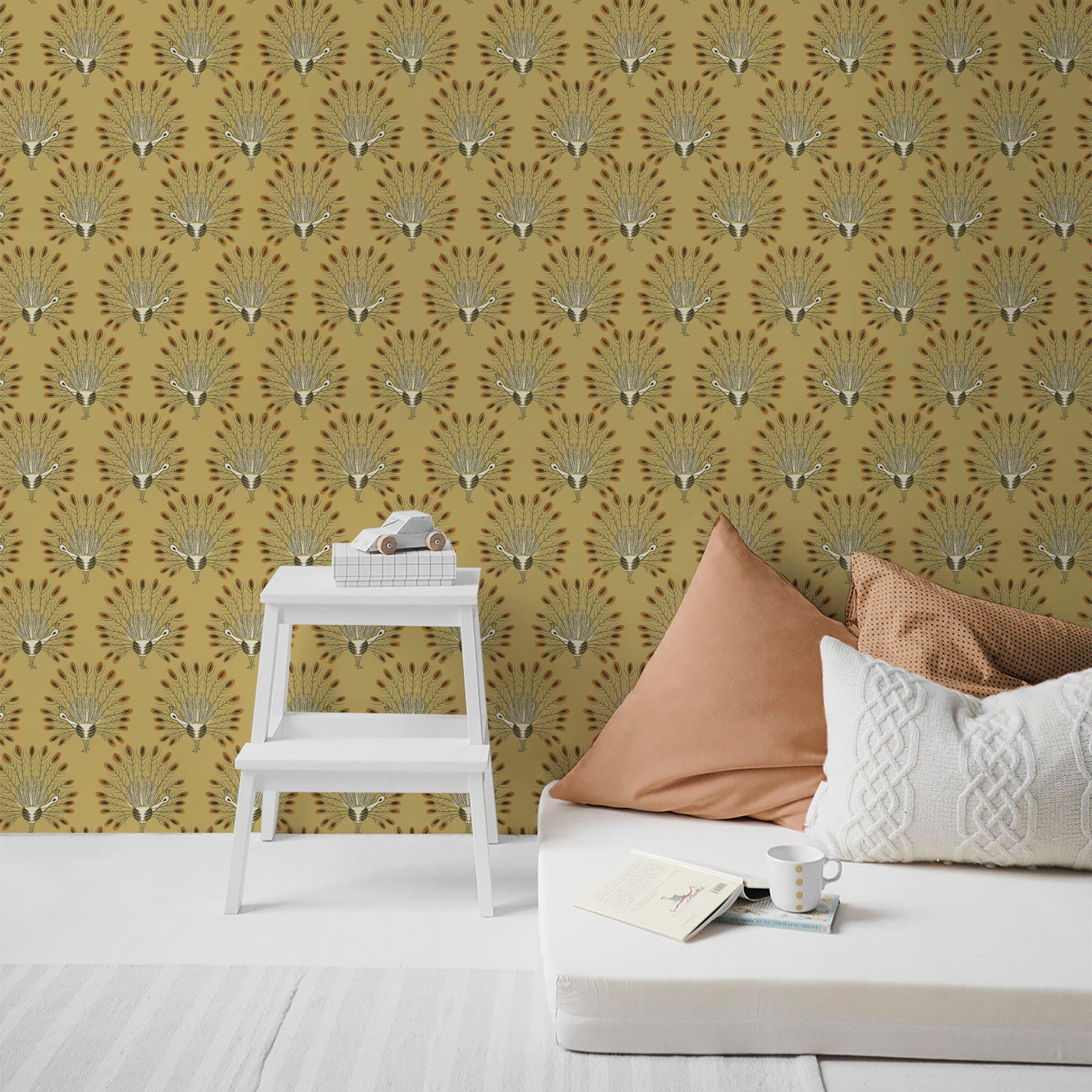 Superfresco Easy Vliestapete Vintage Peacock, glatt, gemustert, (1 St), Vintage Pfau gelb 10 m x 0.52 m