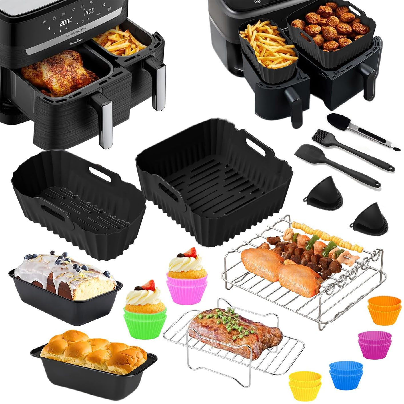 Maximieren Sie Ihre Kochmöglichkeiten mit diesem vielseitigen airfryer zubehör set – perfekt geeignet für die Tefal Ey9018 Dual Easy Fry, Tower T17099, Salter EK5729 und andere Dual Basket Heißluftfritteusen mit 3L + 6L Kapazität.
