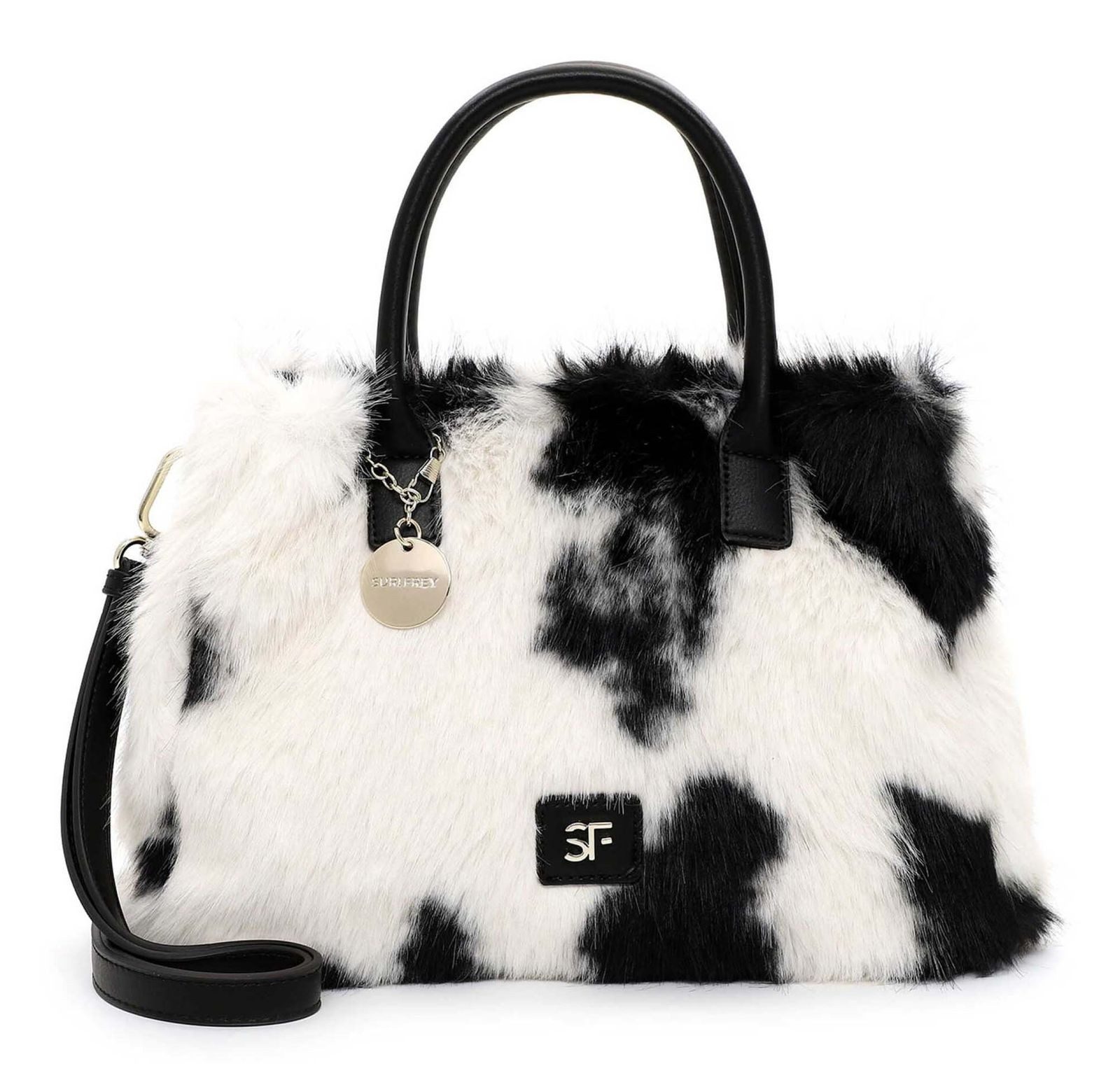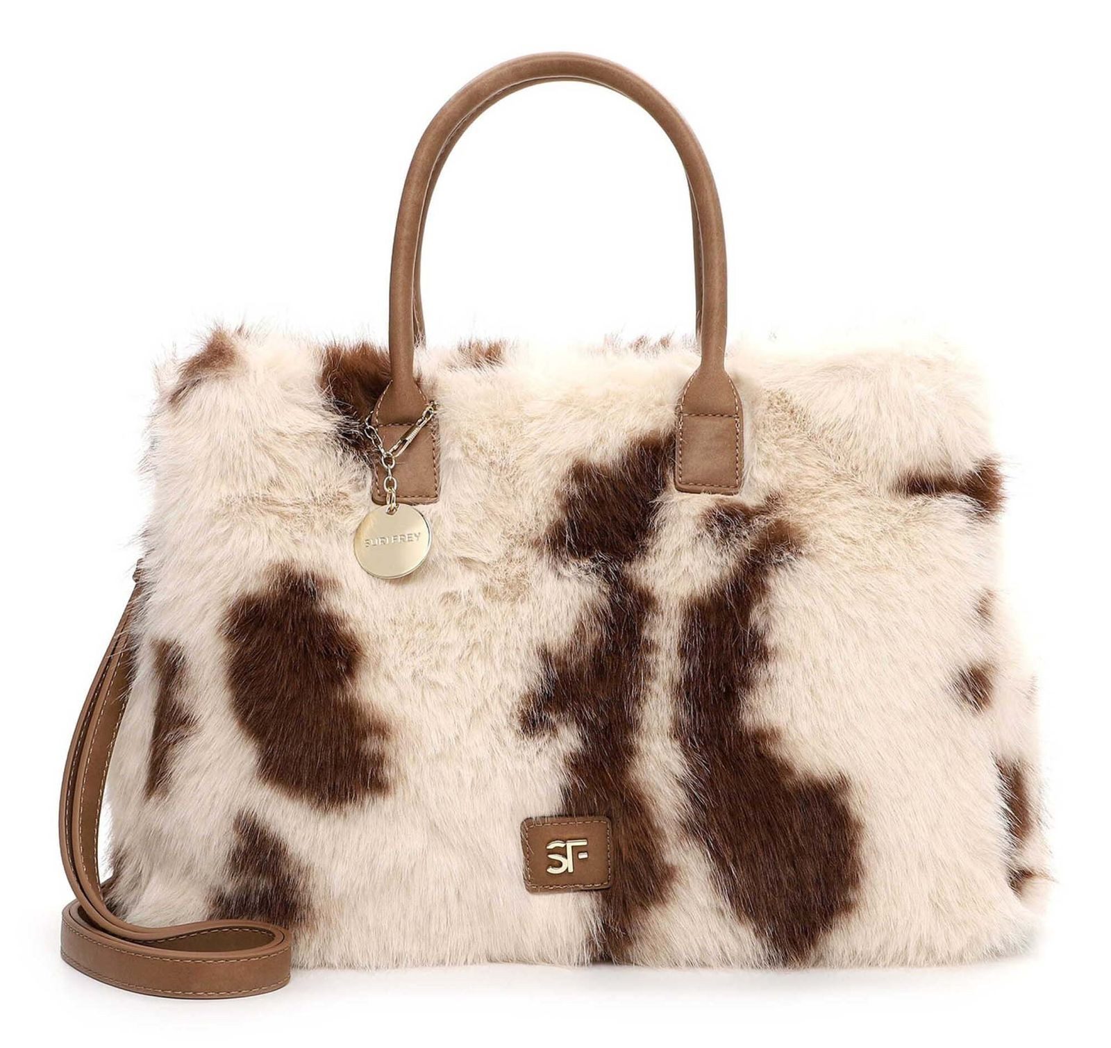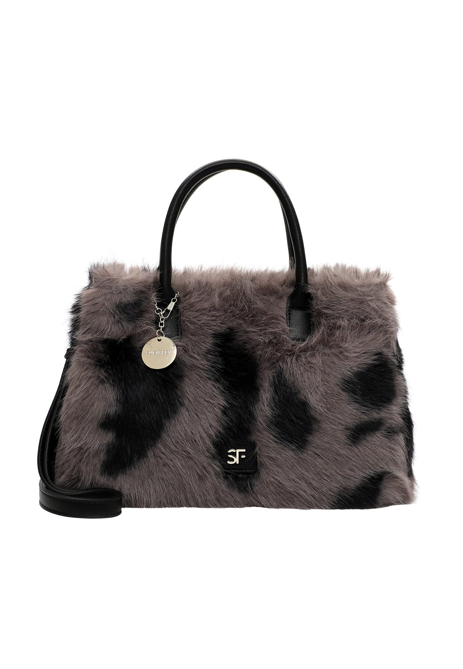 "Frey" und selbstbewusst - SURI FREY Eine Handtasche zeigt die wahre Persönlichkeit einer Frau. Ob hundertpro geordnet oder etwas chaotisch - sie wird einfach heißgeliebt! SFY Misty ist der wunderschöne Shopper in Kunstpelz-Optik mit Reißverschluss, der wahre Persönlichkeit ausstrahlt. Ein unverzichtbares Accessoire für jede Lebenslage - der Shopper. Es ist so einfach, für alle Eventualitäten gerüstet zu sein. Das Modell besteht aus Feinsynthetik und lässt sich mit einem Reißverschluss verschließen. Die Kunstpelz-Optik und das Animal-Design sind fein gearbeitet und verleihen dem Shopper einen edlen Look. Wer viel draußen ist, will einfach immer gut aussehen. SURI FREY hat genau die Accessoires, die so gut gefallen und die jedes Outfit gekonnt vervollständigen. Der Shopper hat ein übersichtliches Hauptfach und eine Reißverschluss-Mittelwand, die praktisch für die sichere Aufbewahrung wichtiger Dinge ist. Das Modell SFY Misty ist von der Haptik eher weich und daher wirklich angenehm zu tragen. Einen verspielten Akzent setzt das hübsche Logo-Patch. Mit den zwei Tragegriffen wird der neue Lieblingsbegleiter ganz entspannt als Schultertasche getragen. Manchmal braucht man etwas mehr Platz in der Tasche. In dieses Modell passt einfach alles - Portemonnaie, Smartphone und zur Not noch ein Buch, das einem die Wartezeit auf die Freundin versüßt, wenn sie mal wieder zu spät kommt.
