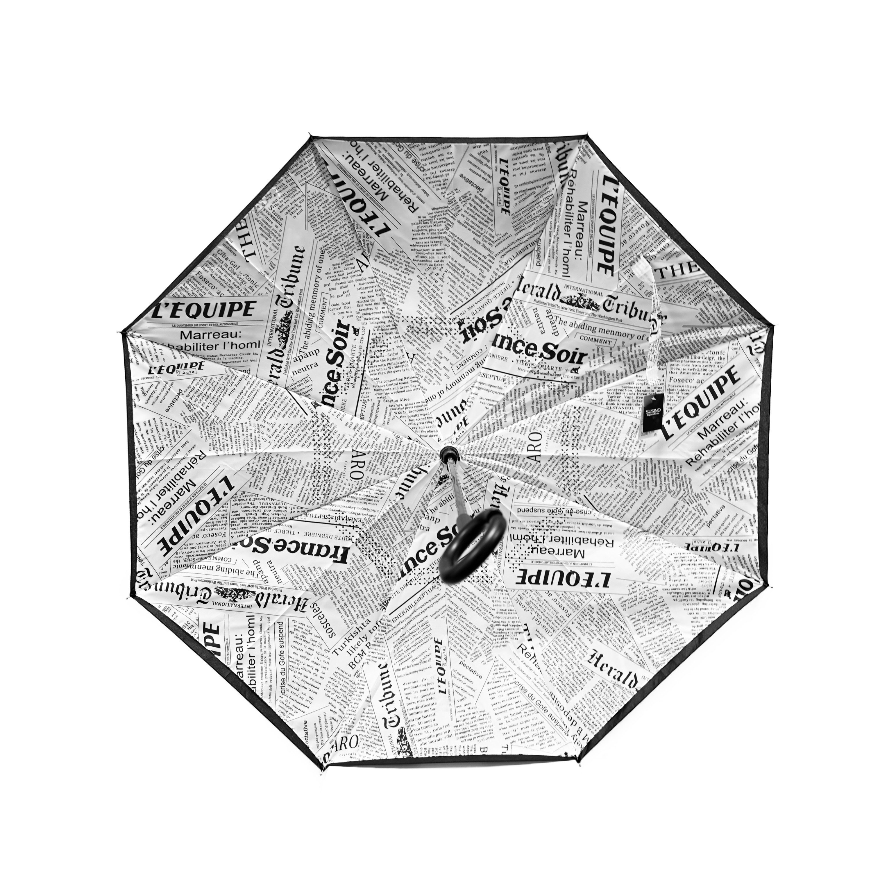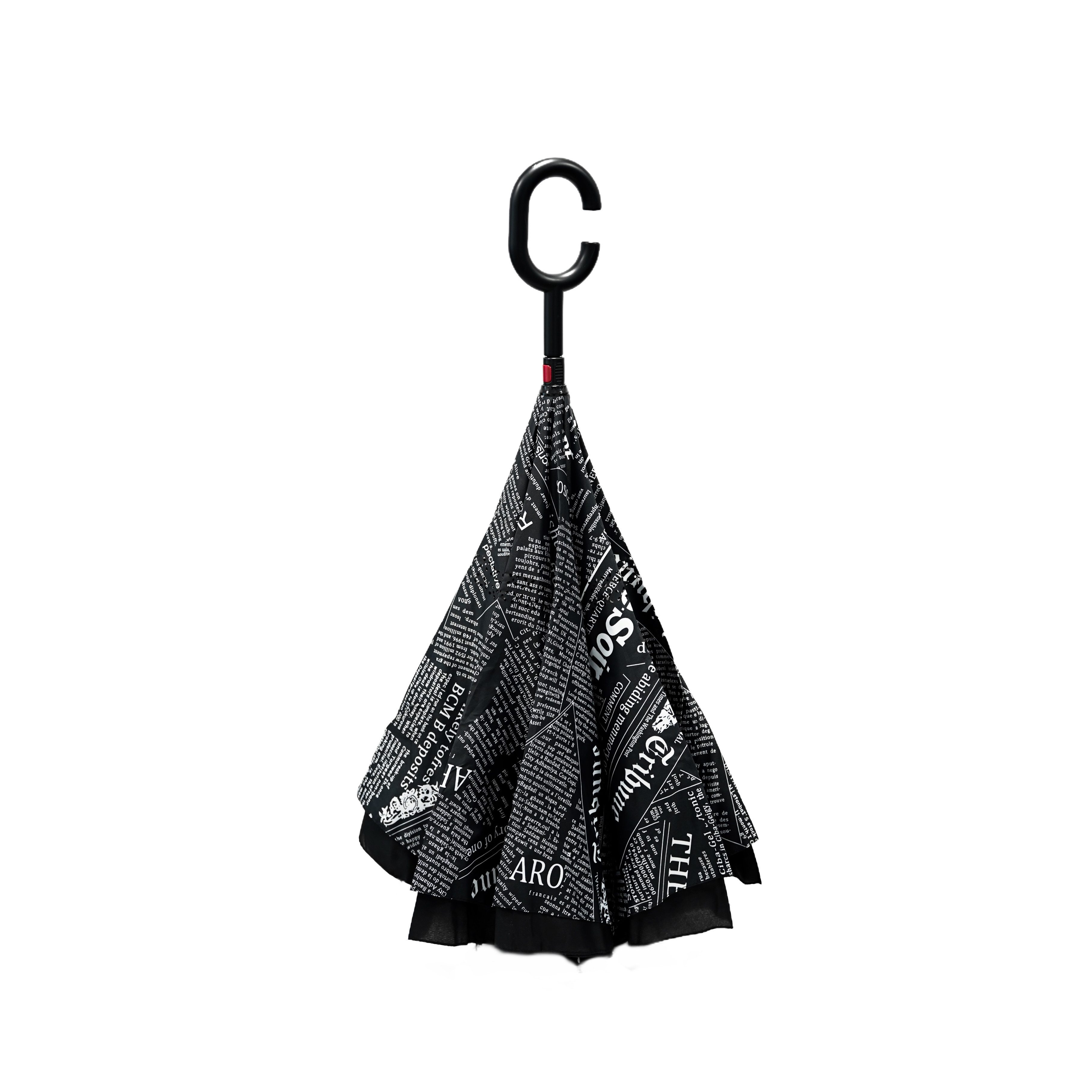 Das Zeitungsmotiv macht den Schirm zu einem echten Hingucker.