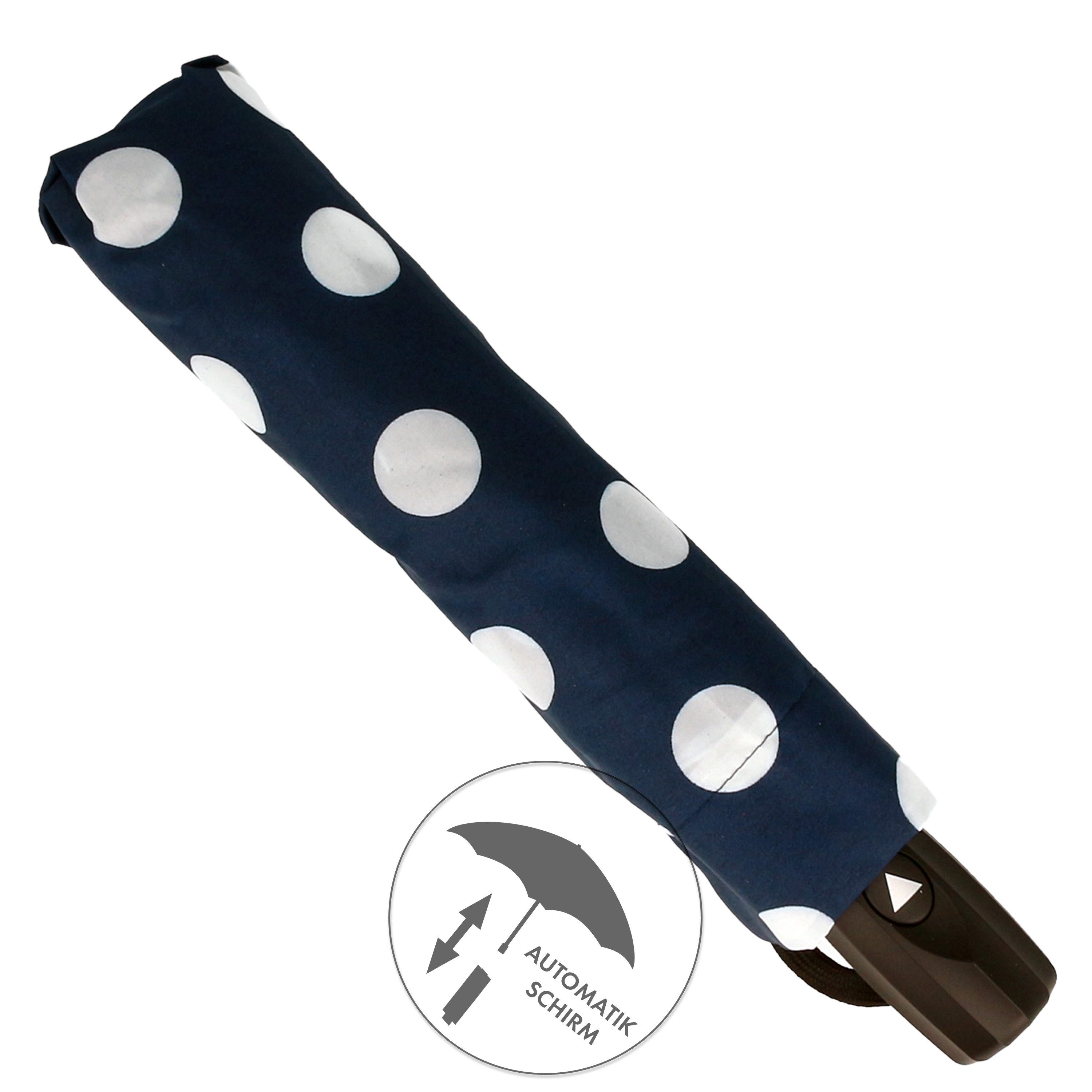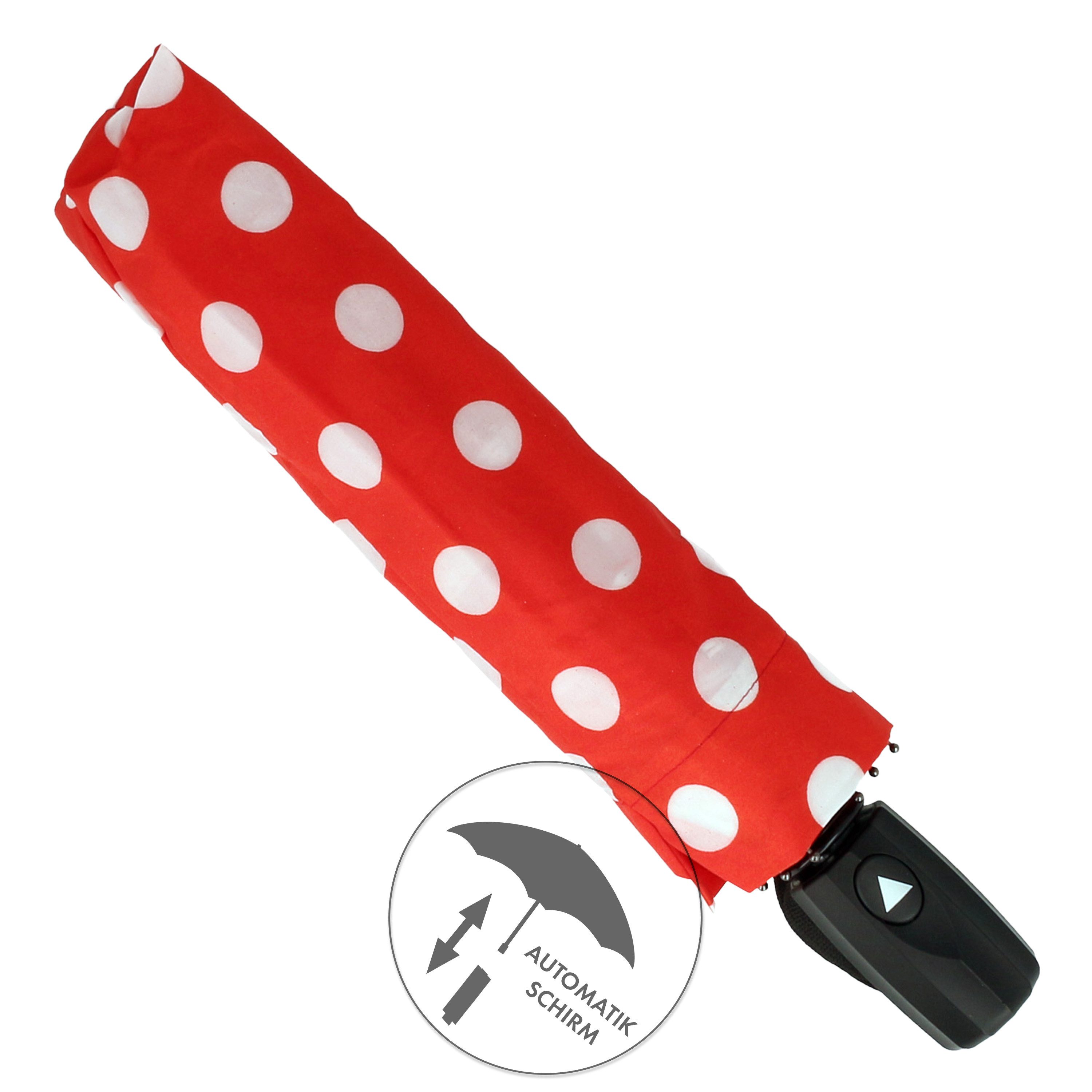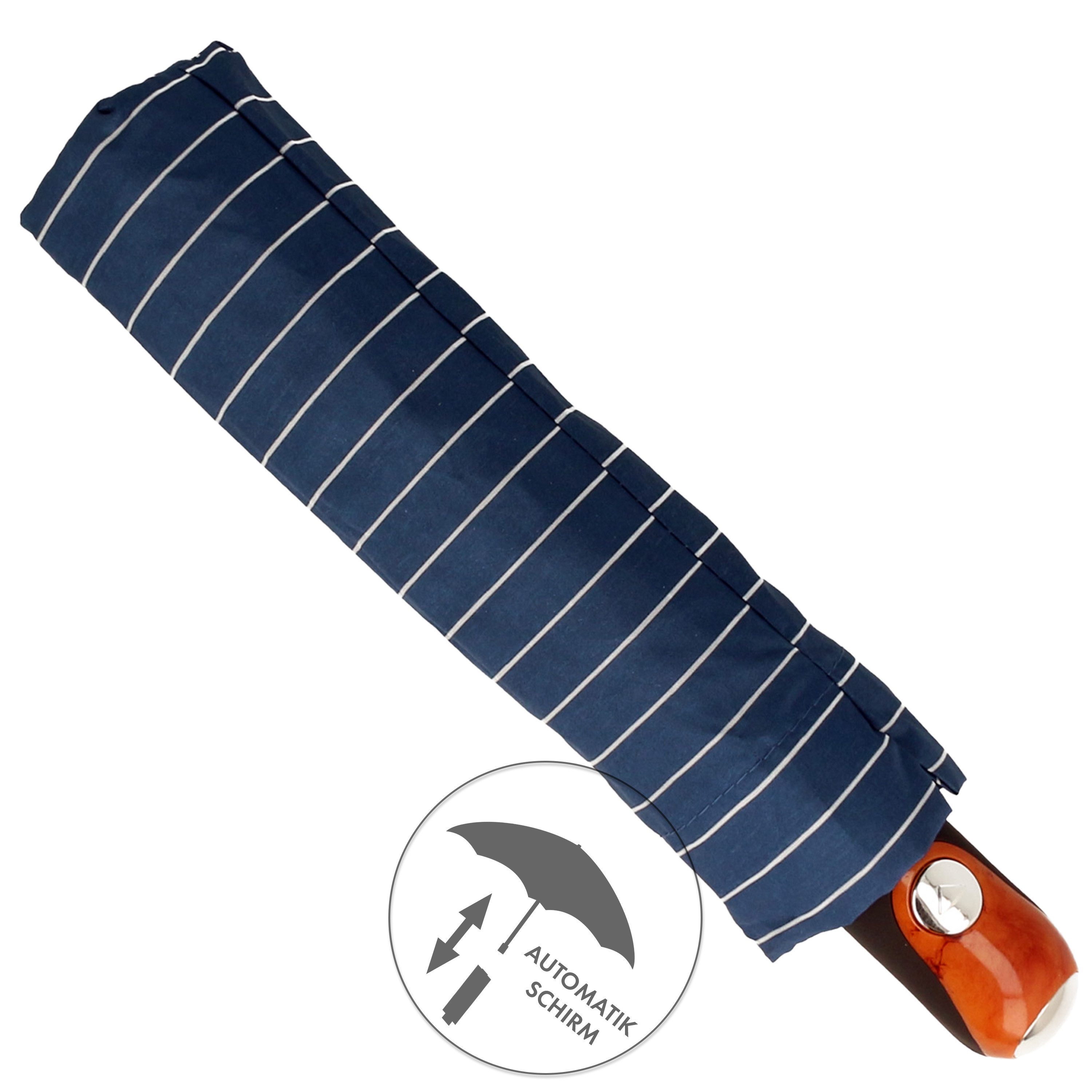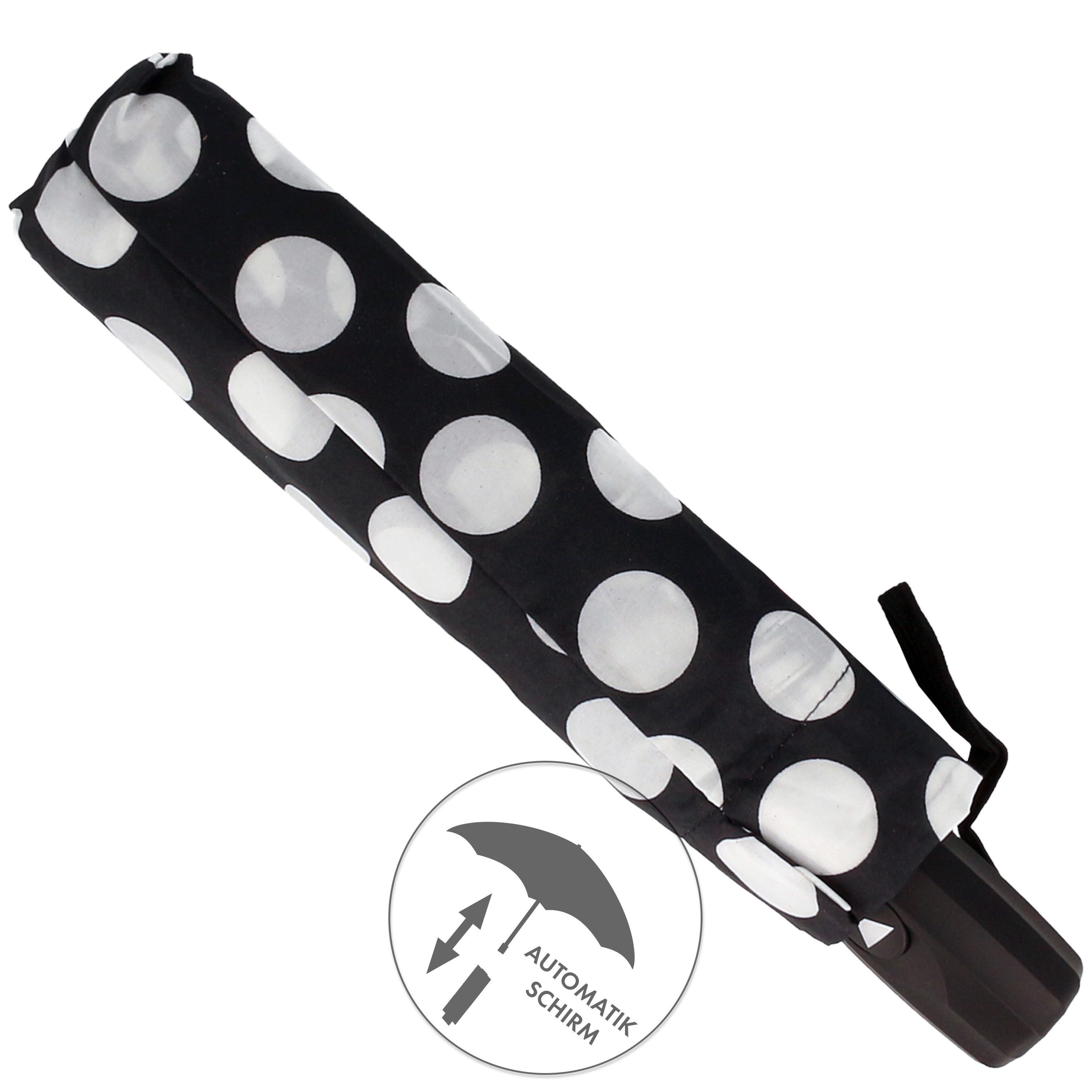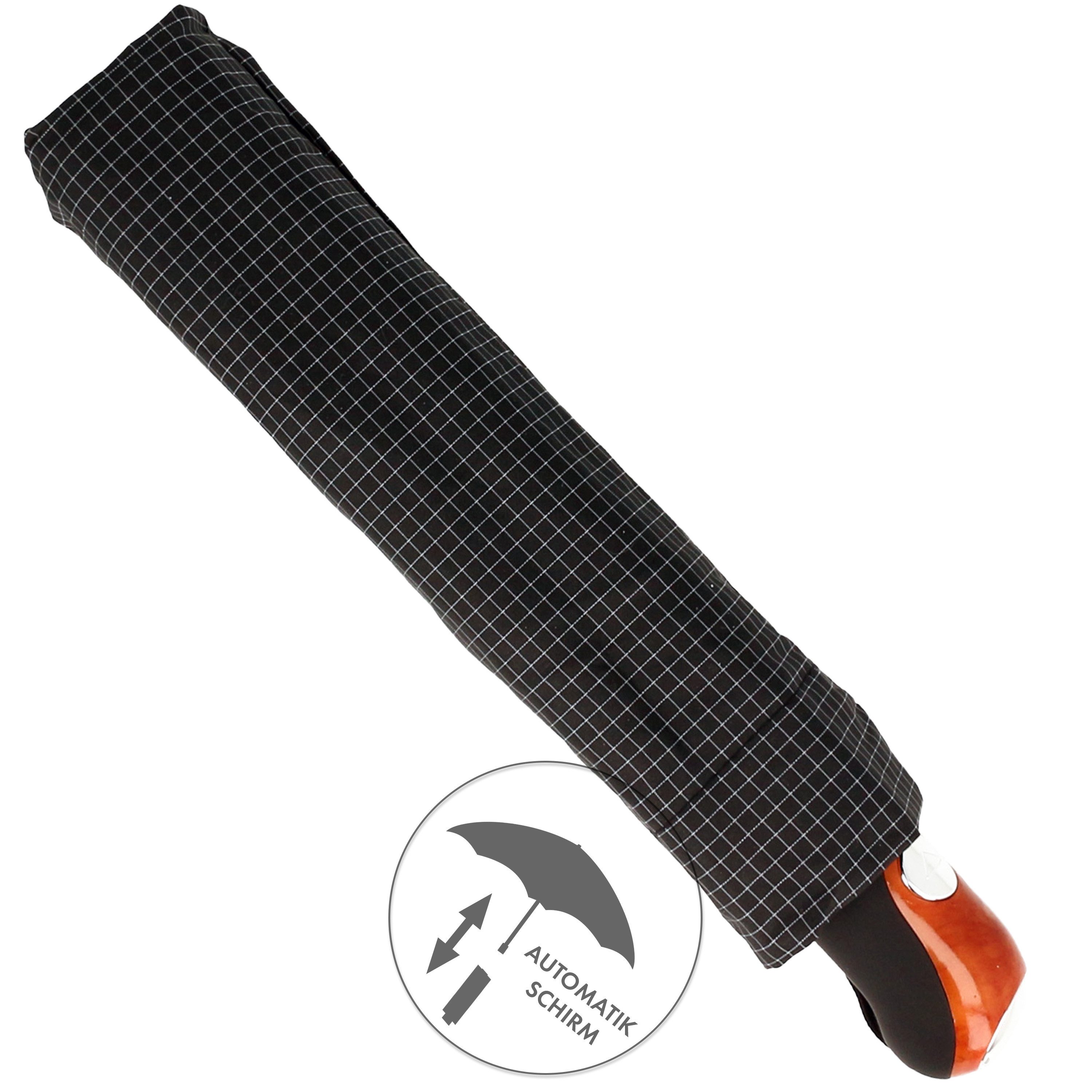 Kompakter Automatik-Taschenregenschirm mit wasserabweisendem Pongee-Stoff und stabilem Aluminium-Gestell. Der Windschutz mit Umklapp-Mechanismus erhöht die Haltbarkeit bei Böen. Ideal für unterwegs dank Handschlaufe und handlicher Maße.
