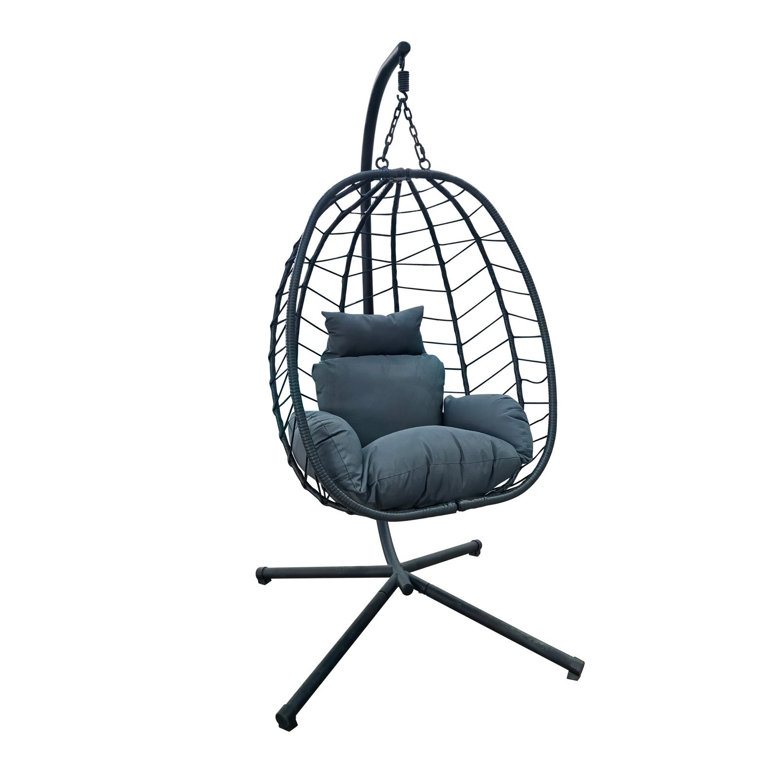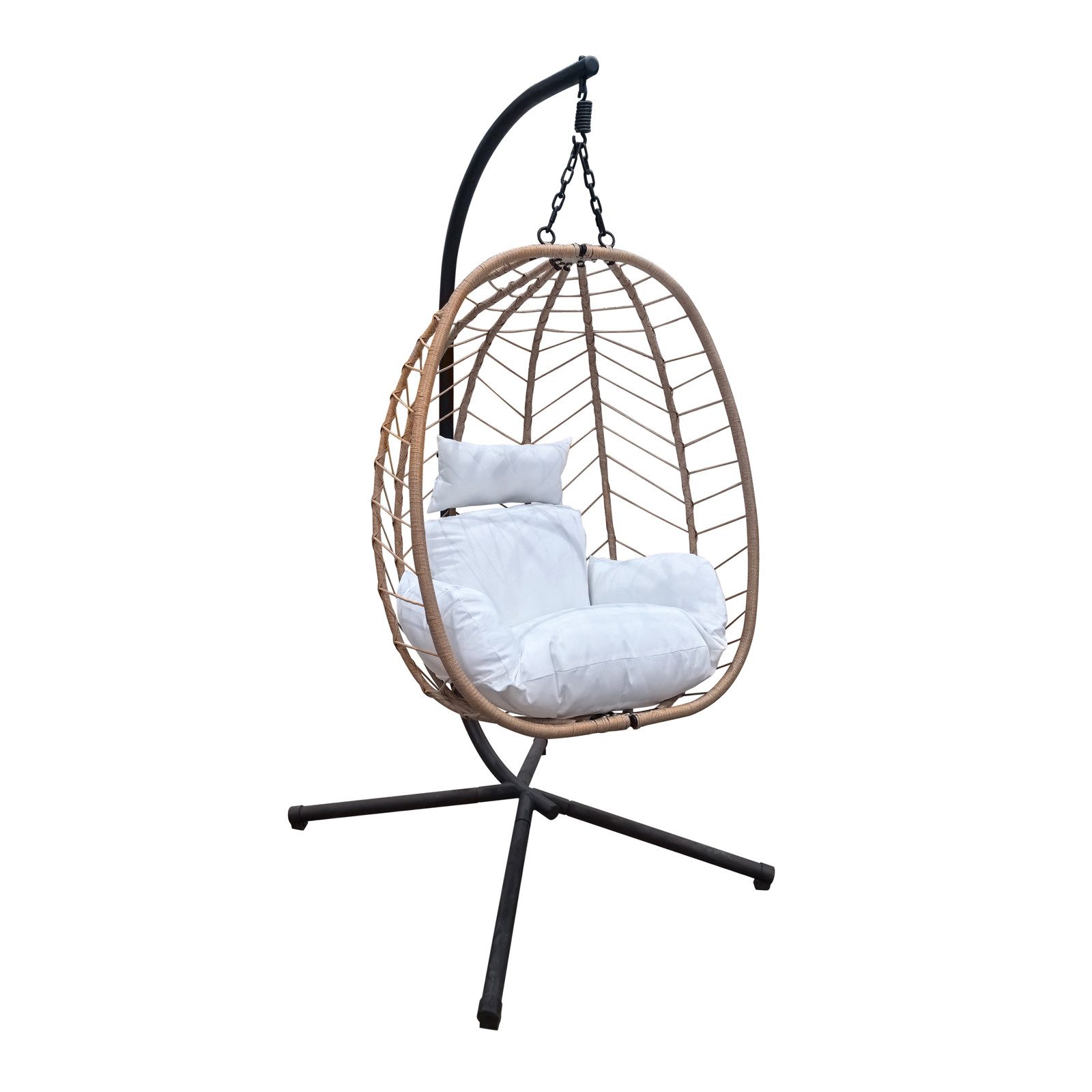 Das robuste Polyrattan in Kombination mit pulverbeschichtetem Stahl sorgt nicht nur für ein hochwertiges Aussehen, sondern auch für die nötige Stabilität. Zudem ist der Hängesitz klappbar, wodurch er sich leicht zusammenfalten und platzsparend verstauen lässt.