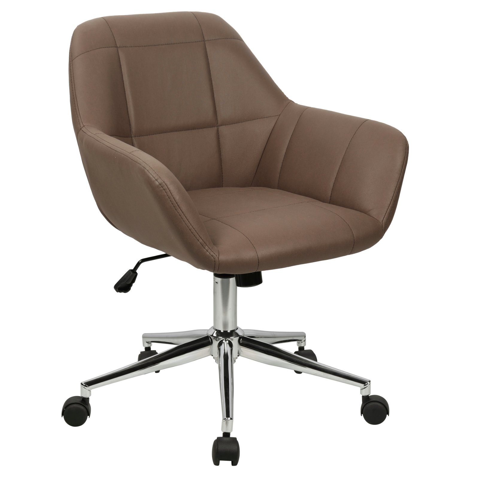 Die weiche Polsterung sowie die ergonomisch geformte Sitzschale des Bürostuhls schaffen ein angenehmes Sitzgefühl und sorgen für höchsten Komfort - egal, in welcher Situation. Zudem sorgt der Schreibtischstuhl durch den edlen Kunstlederbezug mit Steppnähten und das moderne Vintage-Design für das gewisse Etwas in jedem Raum und ist ein wahrer Eye-Catcher.