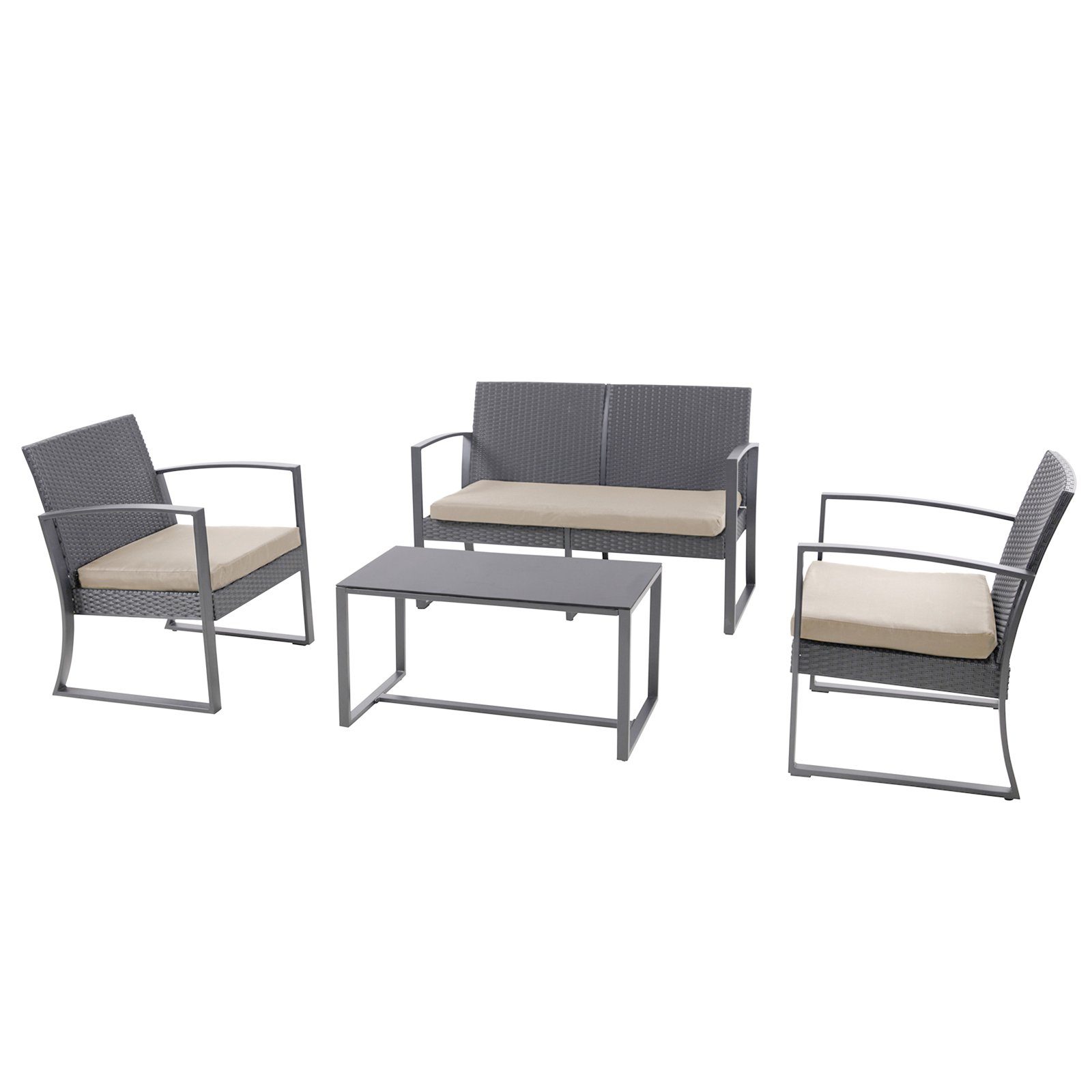 SVITA LOIS XL Sitzgruppe Polyrattan und Metall-Garnitur in Grau - inkl. Couchtisch und beigen Sitzkissen