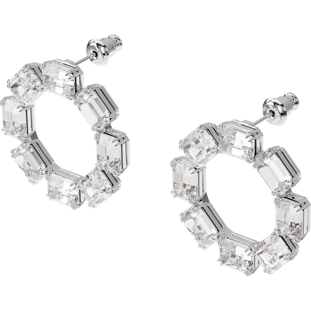 Diese geometrischen Kristall-Ohrringe sind als perfekte Kreise aus klaren Steinen im Octagon-Schliff gefertigt. Minimalistisch im Design, bei maximaler Wirkung. Mit ihrer rhodinierten Fassung können Sie diese Ohrringe zu so gut wie allem tragen – ob schlichtes T-Shirt am Tag oder schicke Garderobe am Abend. Die Ohrringe wurdenn für die Millenia Familie aus der Collection I von Creative Director Giovanna Engelbert entworfen.