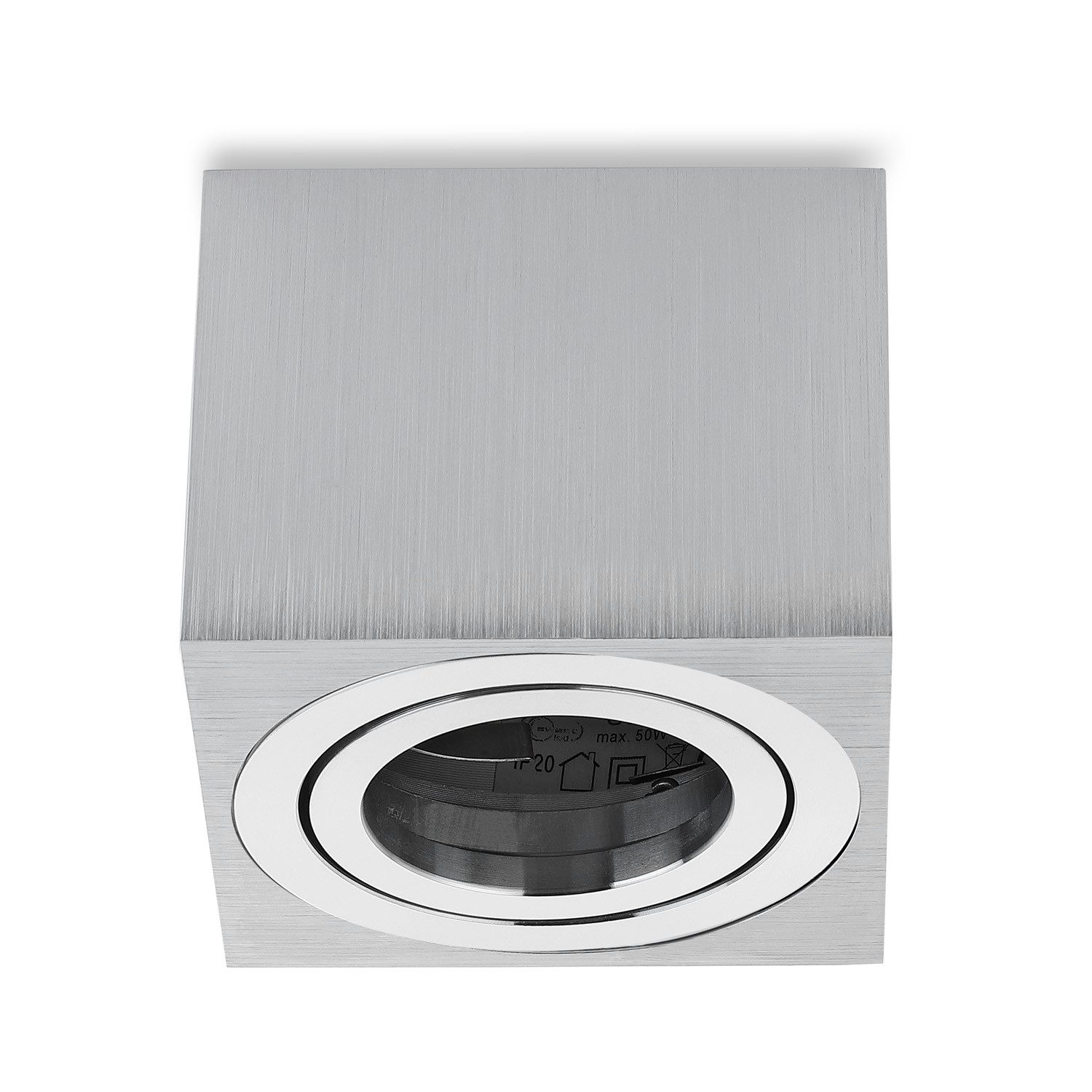 BESONDERE EIGENSCHAFTEN - Die Aufputz Deckenleuchten sind aus Aluminium in der Gehäusefarbe alu gebürstet. Die Aufbaurahmen haben eine Schutzklasse von IP44, Deckenspot nicht schwenkbar und sind geeignet flach Leuchten 230V