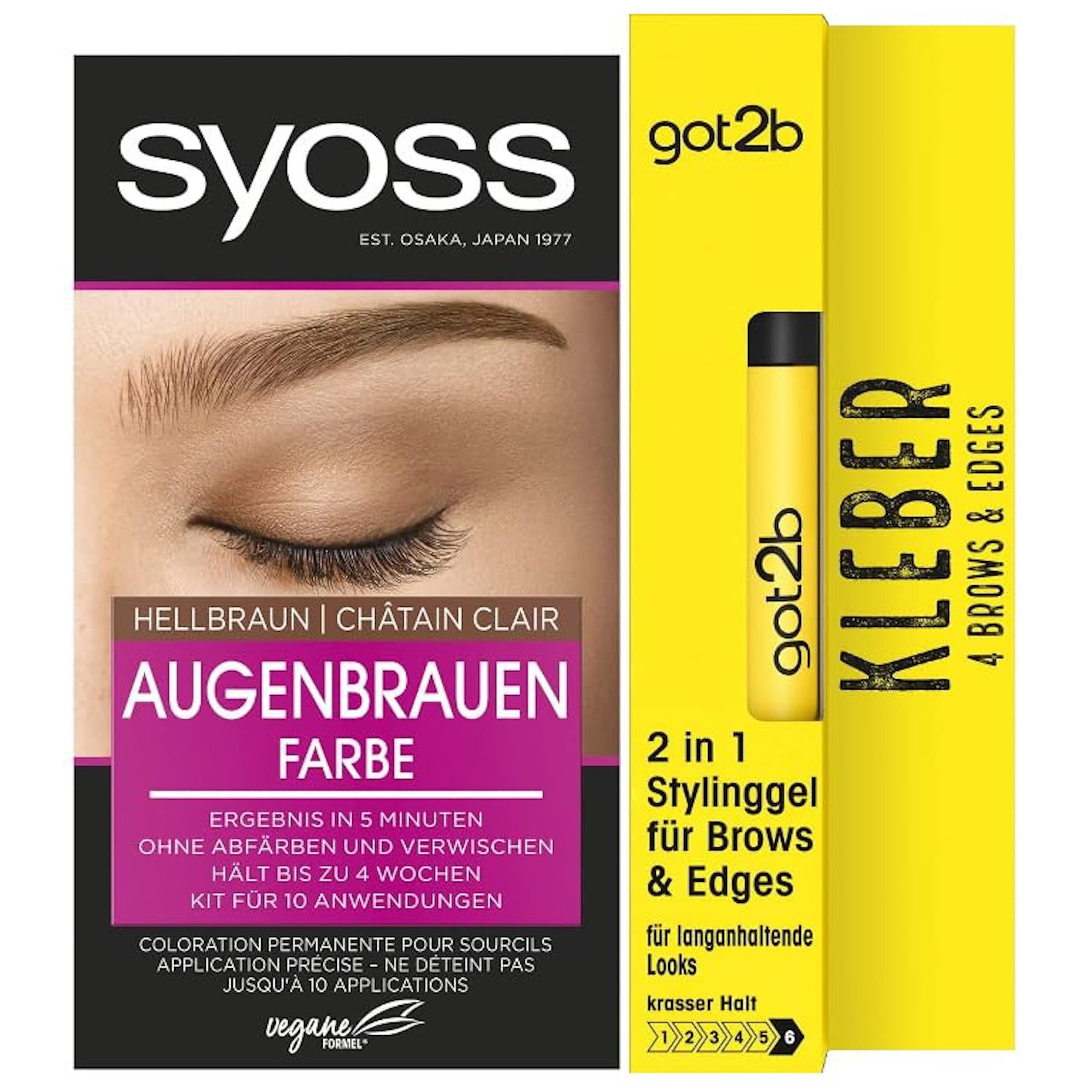 Inhaltsstoffe | Color-Creme/Creme colorante: Aqua (Water, Eau), Stearyl Alcohol, Cetyl Alcohol, Glyceryl Stearate, Toluene-2,5-Diamine Sulfate, Ammonium Hydroxide, Resorcinol, Sodium Palmitate, Sodium Stearate, Sodium Sulfite, m-Aminophenol, Acrylates Copolymer, Phenethyl Alcohol, Citronellol, Etidronic Acid, 4-Amino-2-Hydroxytoluene, Potassium Hydroxide, Nerol, Geraniol, Benzyl Alcohol, Benzyl Benzoate Entwicklerlotion/Lotion revelatrice: Aqua (Water, Eau), Hydrogen Peroxide, Cetearyl Alcohol, PEG-40 Castor Oil, Etidronic Acid, Sodium Cetearyl Sulfate, 2,6-Dicarboxypyridine, Disodium Pyrophosphate, Potassium Hydroxide, Sodium BenzoateStylinggel: Aqua (Water, Eau), Hydroxypropyl Starch, Acrylates/Steareth-20 Methacrylate Crosspolymer, Phenoxyethanol, PEG-40 Hydrogenated Castor Oil, Caprylyl Glycol, Glycerin, Parfum (Fragrance), Sodium Hydroxide, Propylene Glycol, Panthenol,Sodium Benzoate, Benzyl Alcohol, Limonene |