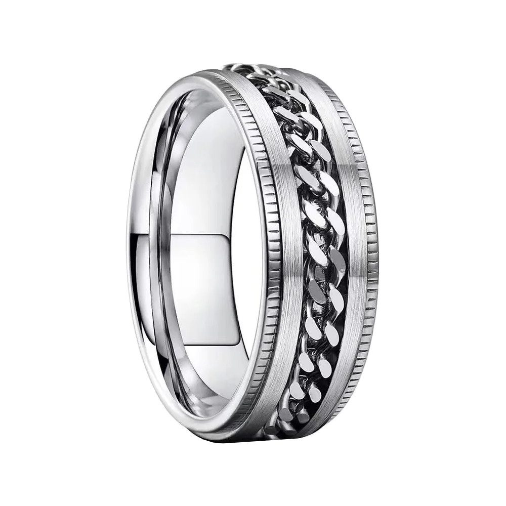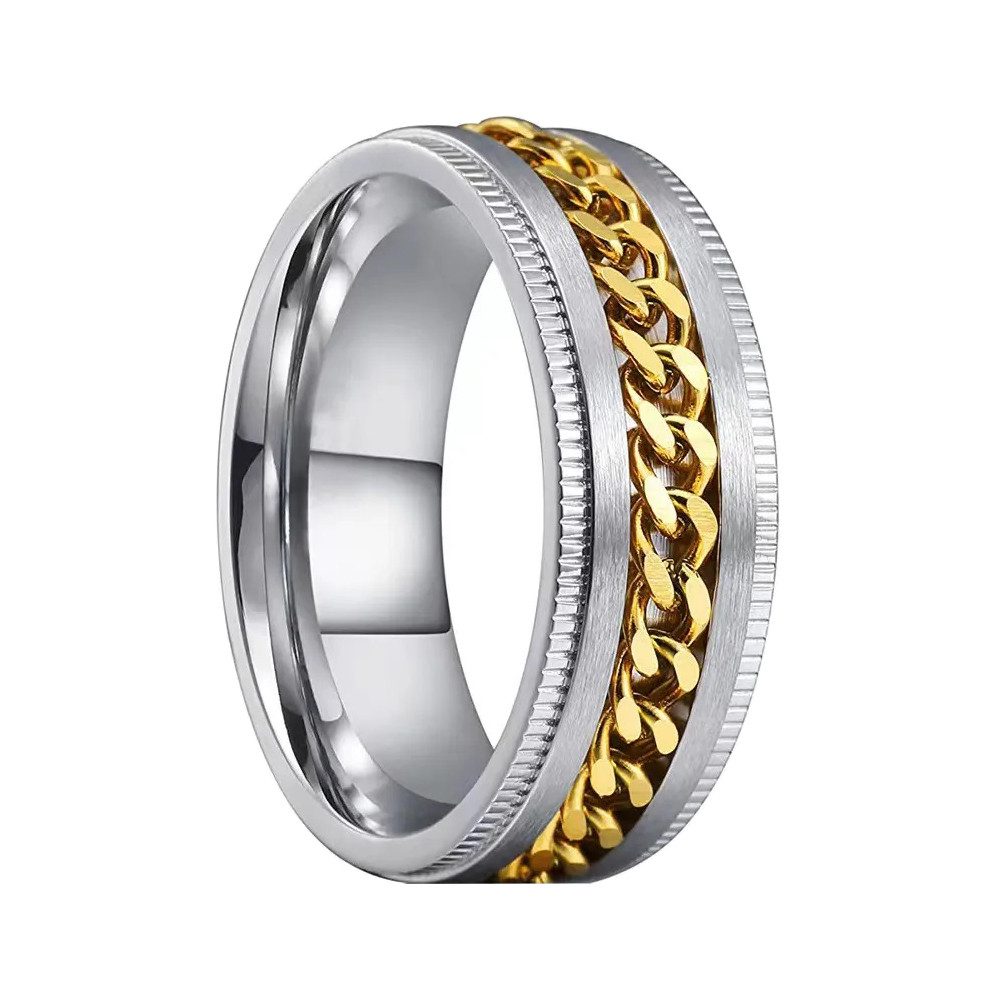 Lieferumfang: 1 Stück. Material: Edelstahl. Ring Größen: siehe Auswahl Breite: 6 mm.Design: Anti Stress - durch drehbare Kette Angesagt - Als Partnerring, Damenring oder Herrenring Langlebig und Hygienisch - durch das Material Edelstahl Zeitlos - durch hochglanzpolierte Oberfläche. Farbe: Silber / Schwarz