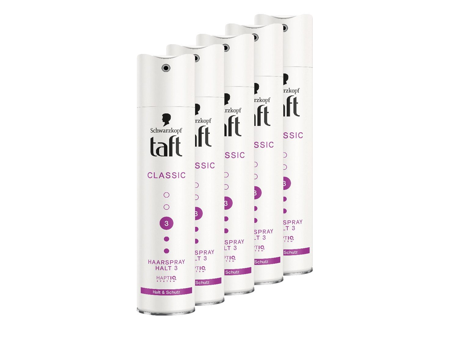 Die innovative Taft Classic Formel bietet langanhaltenden Halt, ohne zu verkleben und lässt sich leicht aus dem Haar ausbürsten. Dieses Taft Schutz-Haarspray hilft dabei, das Haar vor trockenem Haargefühl zu schützen. Dieses Haarspray mit Halt verleiht auch bei Wetterbedingungen wie Feuchtigkeit und Wind Styling-Halt. Das Taft Haarpflegespray verwendet das HAPTIQ-System, um Mikrobindungen zu schaffen und die Haarstruktur zu stärken. Für wunderschöne Frisuren, die man sehen und fühlen kann.