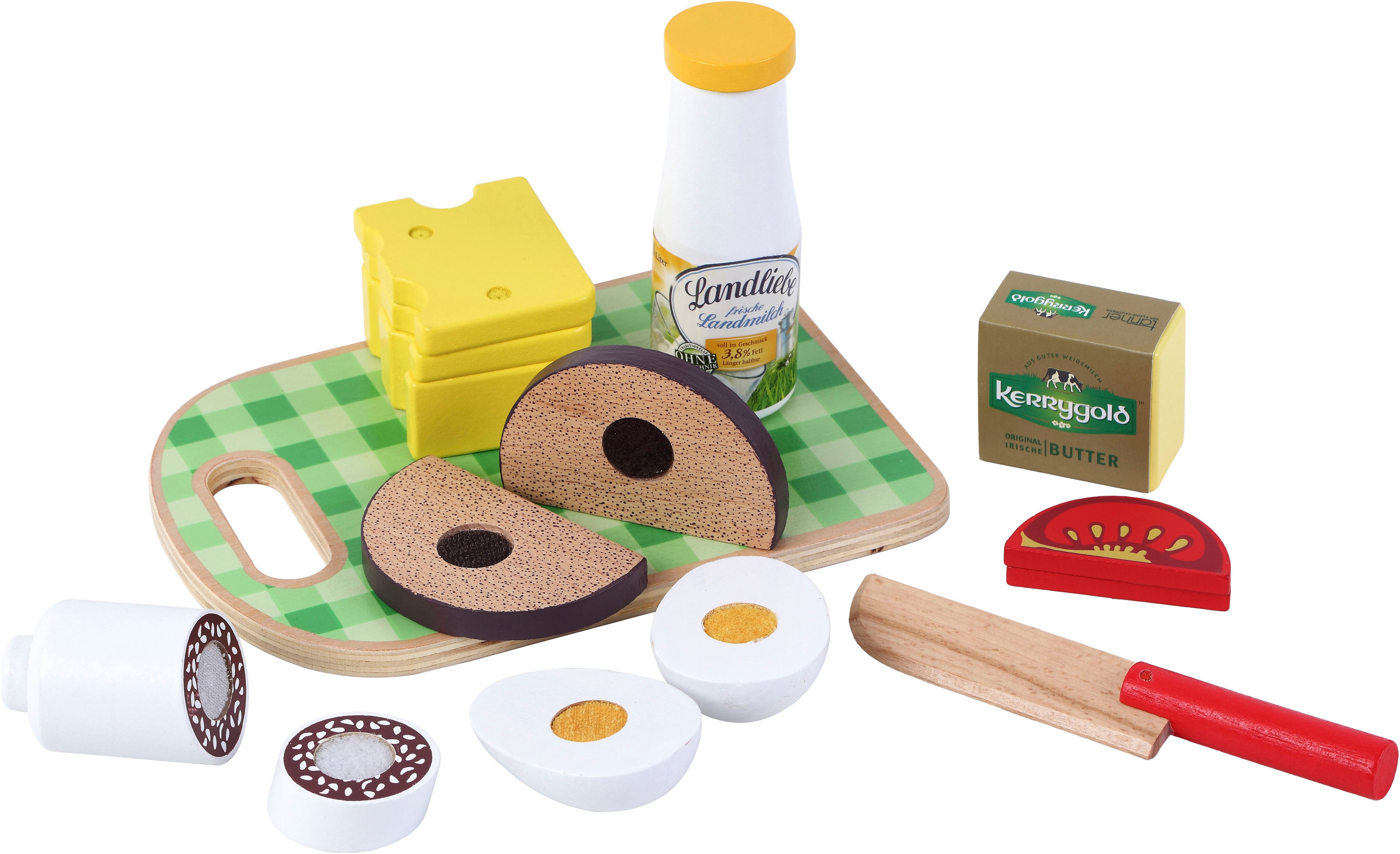 Lieferumfang | . Brot, Butter, Eier, Käse, Milch, Spielzeugmesser, Tomate, Vesperbrett, Wurst |