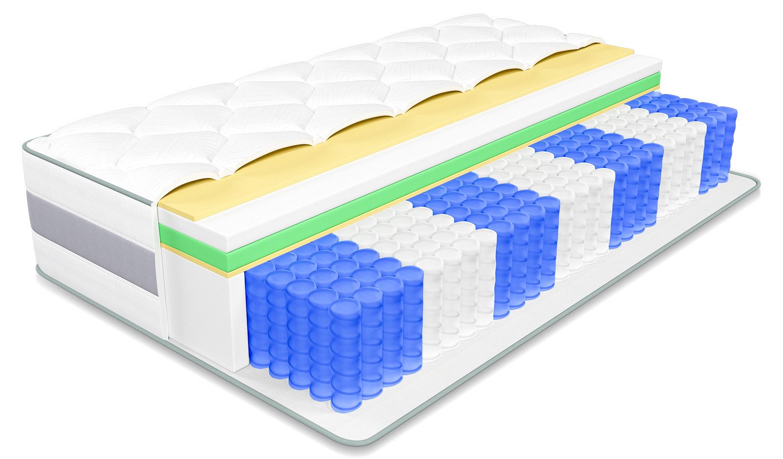 Materialzusammensetzung | Oberer Bezug: 100% Polyester Unterer Bezug: 100% Polyester Kern: 18% Polyurethanschaum + 82% Taschenfederkern |