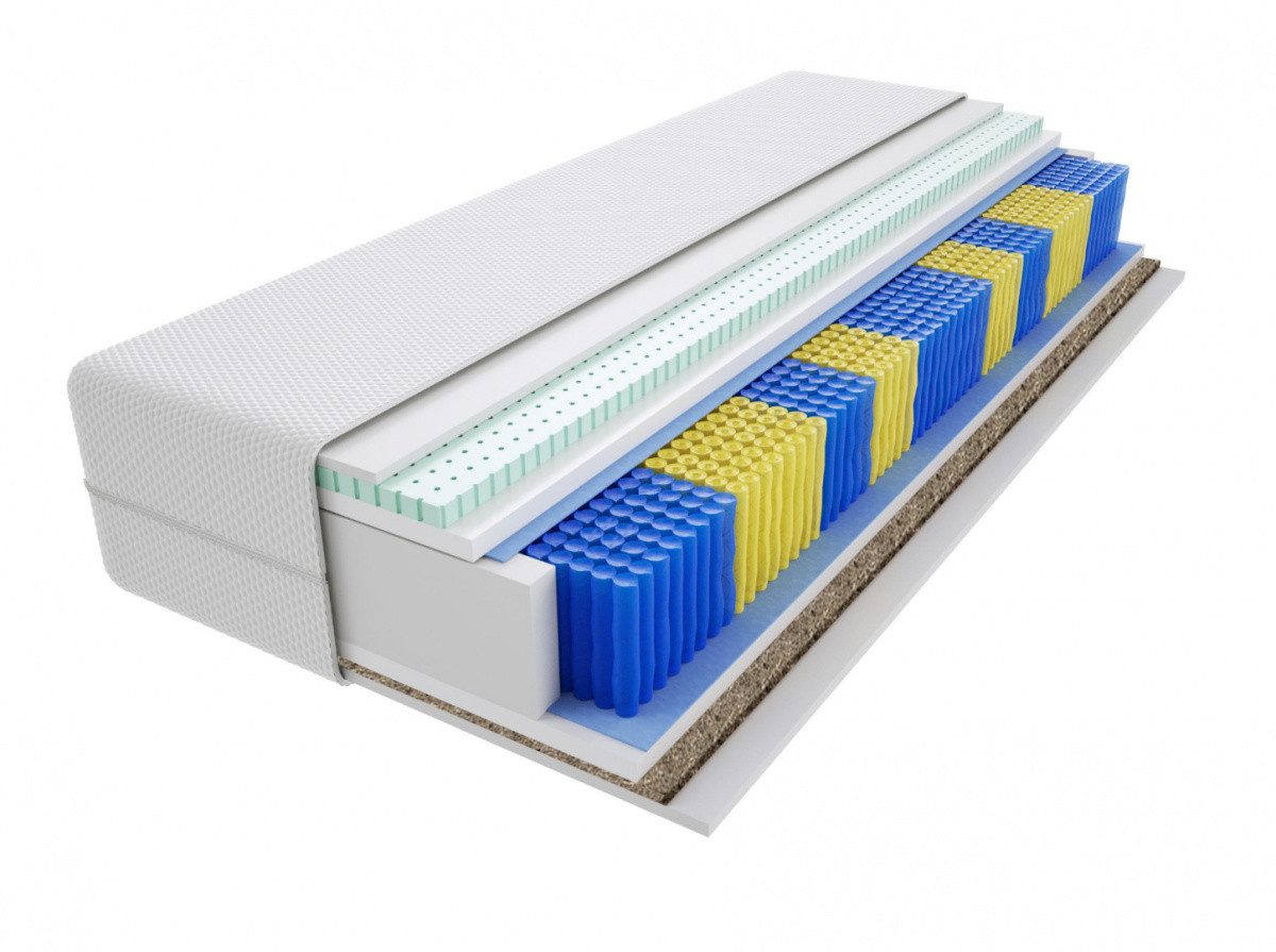 Lateks-die Verwendung dieses Materials wirkt sehr gut auf die Schlafqualität und Elastizität der Matratze aus und reduziert deren Härte.Die Verwendung von Latex erhöht die Luftzirkulation im Inneren der Matratze,dank spezieller Luftkanäle.Eine Latexmatratze passt sich der Körperform viel besser an, stützt sie gleichmäßig,was zu einer besseren und richtigen Durchblutung beiträgt Seegras-100% natürlicher Rohstoff gewöhnt zum Härten der Matratze. Die Seegrasseite ist die harte Seite,hat Belüftungseigenschaften, verhindert übermäßiges Schwitzen,ist antiallergisch und antimykotisch.Es hat einen charakteristischen Geruch von trockenem Gras.Wird für Matratzen mit Aromatherapie verwendet-es wirkt sich positiv auf Entspannung und Schlaf aus Hochflexibler HR-Schaum-mit einer Dichte von 35 kg/m3-dieser Schaum besteht aus einer Vielzahl von Luftblasen, sorgt für eine perfekte Körperanpassung, sehr guten Schlafkomfort und garantiert eine perfekte Belüftung der Matratze Multitaschenfederkern 9 Zonen (510 Stk/1m2)-spielen eine große Rolle bei der Konstruktion der Matratze.Noch besserer Schlafkomfort im Vergleich zum Taschenfederkern-doppelt so viele Stützpunkte.Die doppelte Anzahl der Federn im Vergleich zu einer normalen Taschenfederung erhöht auch die Lebensdauer der Matratze.Jede Feder befindet sich in einer separaten Materialtasche,ist nicht mit einer anderen Feder verbunden, funktioniert separat, arbeitet leise Gesteppter Bezug-hypoallergenes, antiallergisches Material,mit einem L-förmigen Reißverschluss Wichtig:Der Bezug kann je nach Розмір eine andere Anordnung von Inschriften und Zeichen aufweisen.Das Bezugsmuster kann geringfügig von dem auf dem Foto gezeigten abweichen.Die in der Visualisierung verwendeten Farben Farben sind illustrativ und können von den tatsächlichen Farben abweichen,die Eigenschaften der einzelnen Ebenen bleiben jedoch erhalten