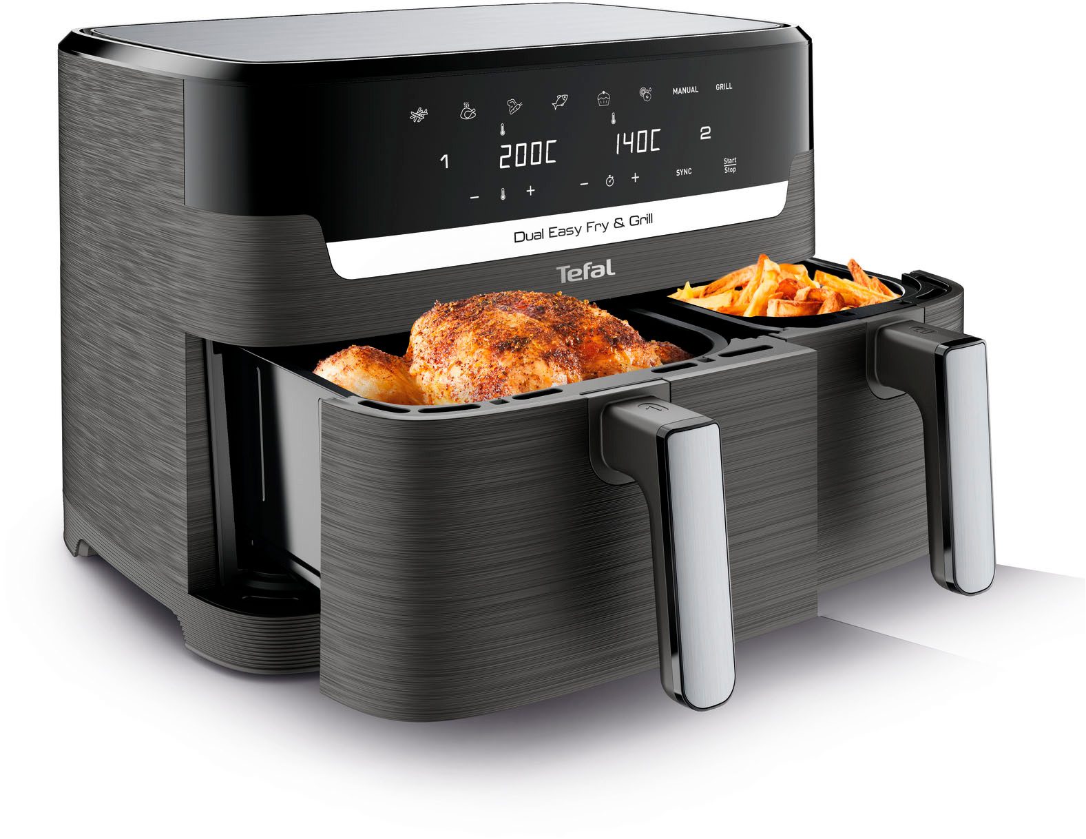 Tefal Heißluftfritteuse Dual Easy Fry & Grill EY905B, knusprig und gesund kochen, 8 voreingestellte Programme, 2700 W, Doppelkammer, inkl. Grillplatten