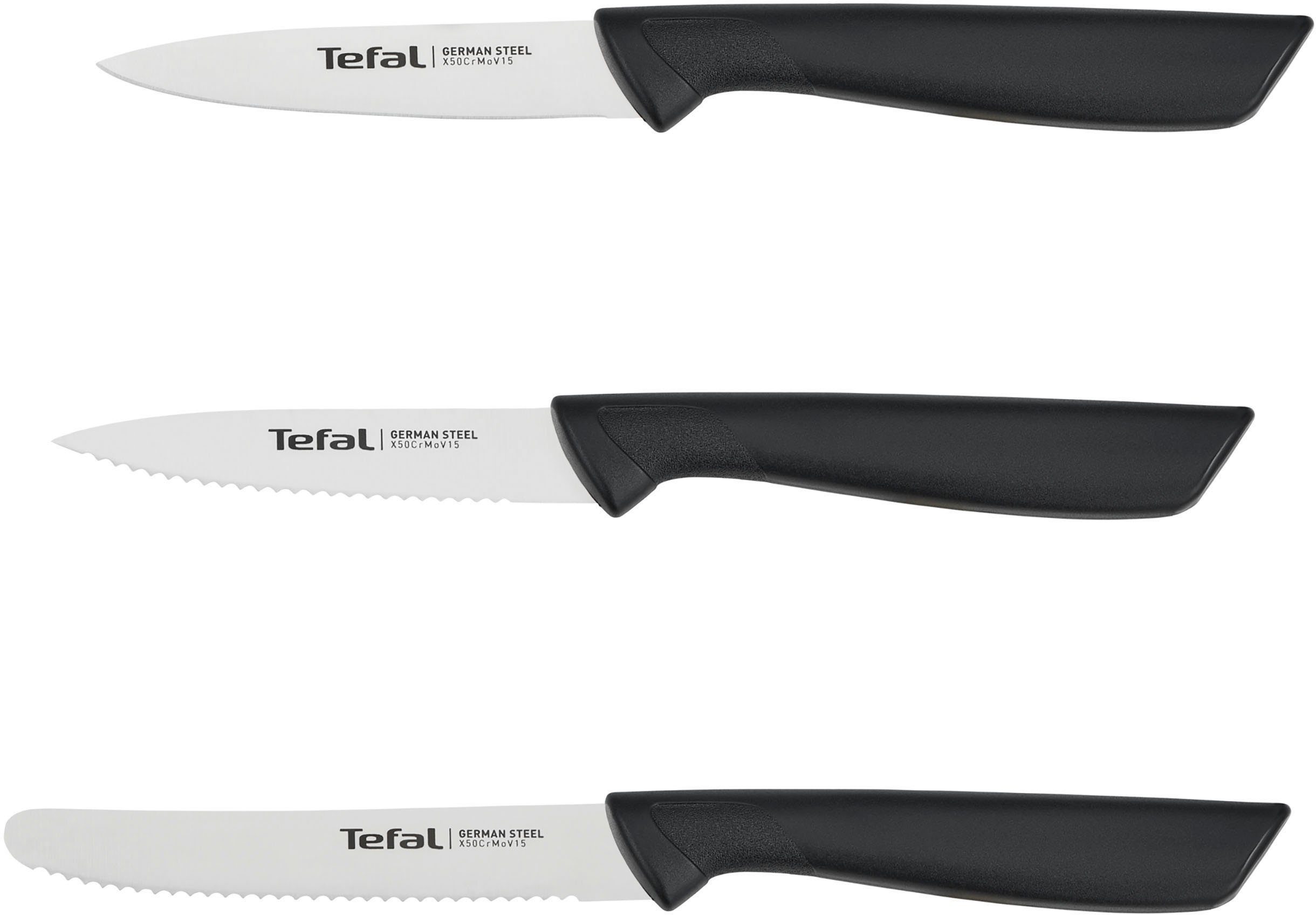 Lieferumfang | Tefal Colorfood Messerset 3-teilig: Universalmesser (10 cm), Schälmesser(8 cm) gezahnt, Schälmesser glatt (8 cm) |