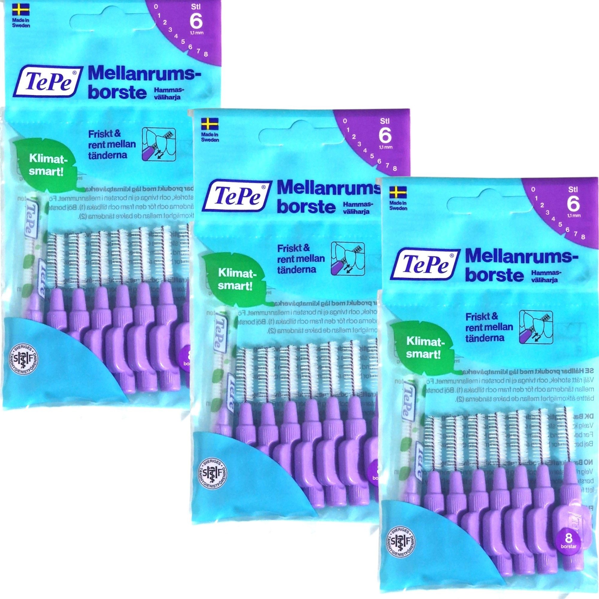 TePe Original Interdentalbürsten haben einen kunststoffummantelten Draht. Die Interdentalbürsten sind sanft zu den Zähnen und zum Zahnfleisch. Sie können bedenkenlos zur Implantatreinigung und zur Pflege von Kieferorthopädischen Apparaturen benutzt werden. Da TePe ein schwedischer Hersteller ist, kann die Packung mit schwedischer Beschreibung sein. 3x 8 Stück im Beutel.