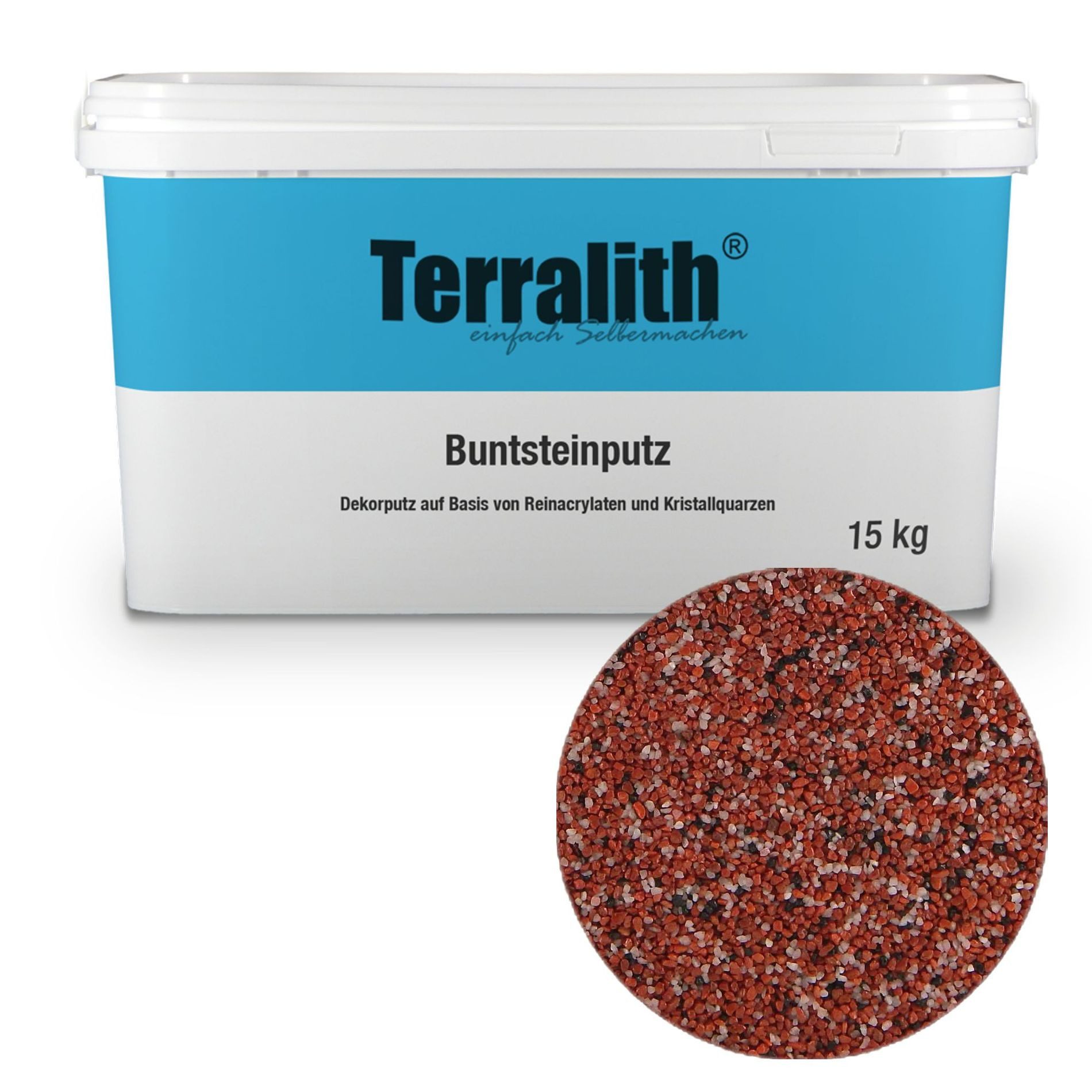 Terralith-Buntsteinputz ist ein verarbeitungsfertiger Dekorationsputz aus Marmor-Granulat bzw./ oder eingefärbter Körnung mit einem Reinacrylat als Bindemittel. Terralith-Buntsteinputz ist diffusionsfähig und langlebig. Er ist im Innen- und Außenbereich anwendbar.