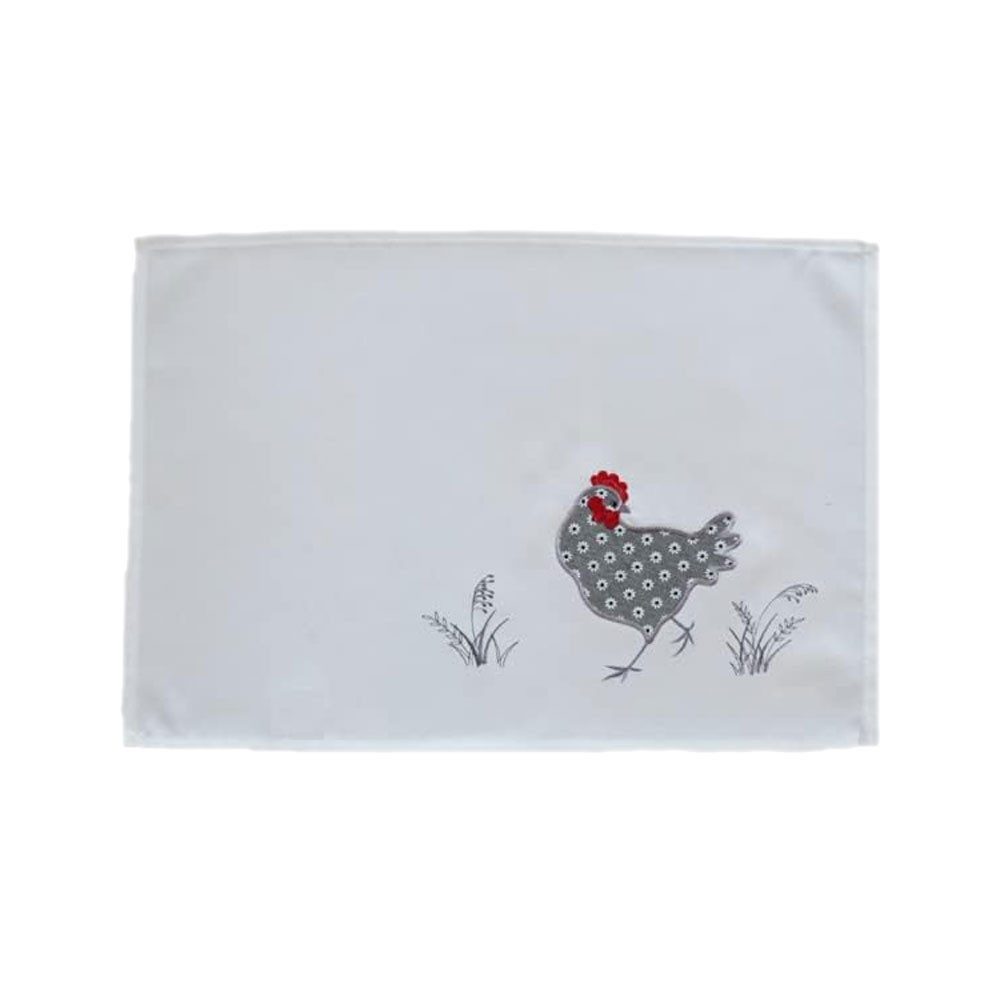 Verleihen Sie Ihrem Esstisch einen rustikalen Charme mit dieser stilvollen Tischwäsche, die mit einer ansprechenden Stickerei eines Hahns auf ecrufarbenem Grund verziert ist.