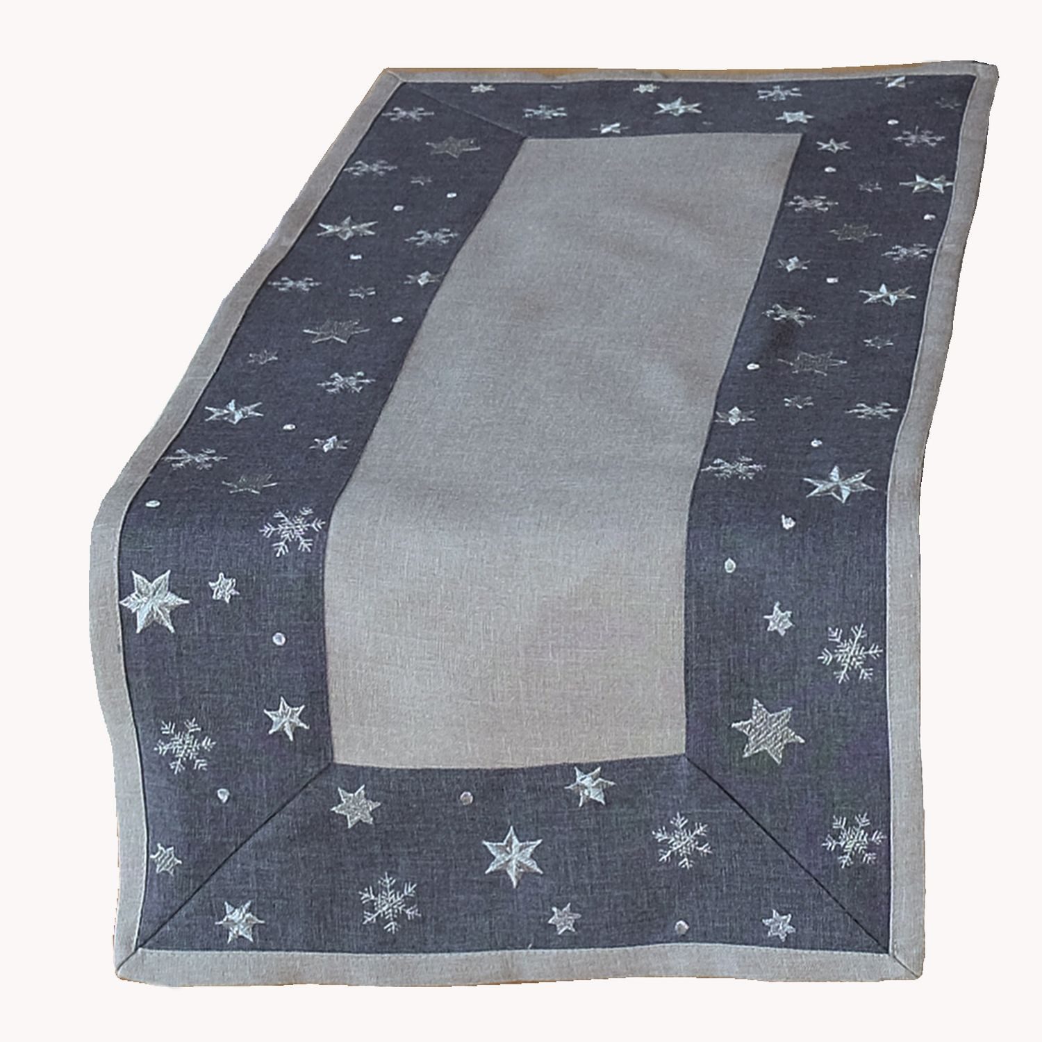 Holen Sie sich den Zauber von Weihnachten in Ihr Zuhause mit einer Tischdecke für Weihnachten mit Stickerei Sterne.