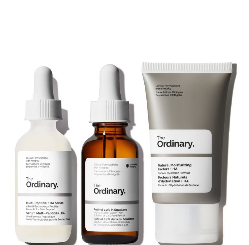 Inhaltsstoffe | Natural Moisturizing Factors + HA: Aqua (Water), Caprylic/Capric Triglyceride, Cetyl Alcohol, Propanediol, Stearyl Alcohol, Glycerin, Sodium Hyaluronate, Arginine, Aspartic Acid, Glycine, Alanine, Serine, Valine, Isoleucine, Proline, Threonine, Histidine, Phenylalanine, Glucose, Maltose, Fructose, Trehalose, Sodium PCA, PCA, Sodium Lactate, Urea, Allantoin, Linoleic Acid, Oleic Acid, Phytosteryl Canola Glycerides, Palmitic Acid, Stearic Acid, Lecithin, Triolein, Tocopherol, Carbomer, Isoceteth-20, Polysorbate 60, Sodium Chloride, Citric Acid, Trisodium Ethylenediamine Disuccinate, Pentylene Glycol, Triethanolamine, Sodium Hydroxide, Phenoxyethanol, Chlorphenesin. Multi-Peptide + HA Serum: Aqua (Water), Glycerin, Lactococcus Ferment Lysate, Acetyl Hexapeptide-8, Pentapeptide-18, Palmitoyl Tripeptide-1, Palmitoyl Tetrapeptide-7, Palmitoyl Tripeptide-38, Dipeptide Diaminobutyroyl Benzylamide Diacetate, Acetylarginyltryptophyl Diphenylglycine, Sodium Hyaluronate Crosspolymer, Sodium Hyaluronate, Allantoin, Glycine, Alanine, Serine, Valine, Isoleucine, Proline, Threonine, Histidine, Phenylalanine, Arginine, Aspartic Acid, Trehalose, Fructose, Glucose, Maltose, Urea, Sodium PCA, PCA, Sodium Lactate, Citric Acid, Hydroxypropyl Cyclodextrin, Sodium Chloride, Sodium Hydroxide, Butylene Glycol, Pentylene Glycol, Acacia Senegal Gum, Xanthan Gum, Carbomer, Polysorbate 20, PPG-26-Buteth-26, PEG-40 Hydrogenated Castor Oil, Trisodium Ethylenediamine Disuccinate, Ethoxydiglycol, Sodium Benzoate, Caprylyl Glycol, Ethylhexylglycerin, Phenoxyethanol, Chlorphenesin. Retinol 0.2% in Squalane: Squalane, Caprylic/Capric Triglyceride, Retinol, Solanum Lycopersicum (Tomato) Fruit Extract, Simmondsia Chinensis (Jojoba) Seed Oil, BHT. |