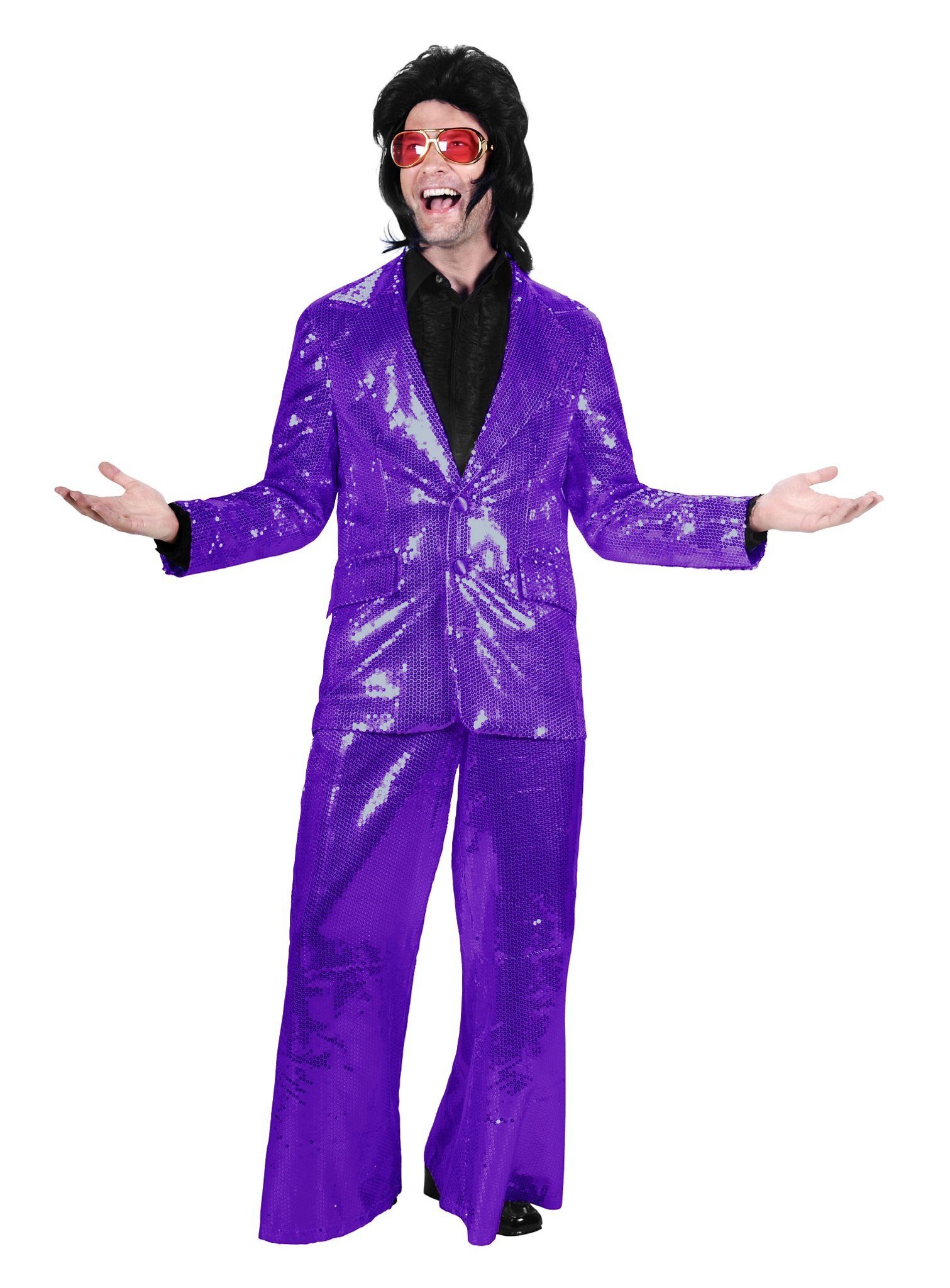 Ausstattung | - Schlagersänger Pailletten Anzug lila zweiteilig- mit Jackett- mit Hose- ohne sonstige Kostümteile und Accessoires |