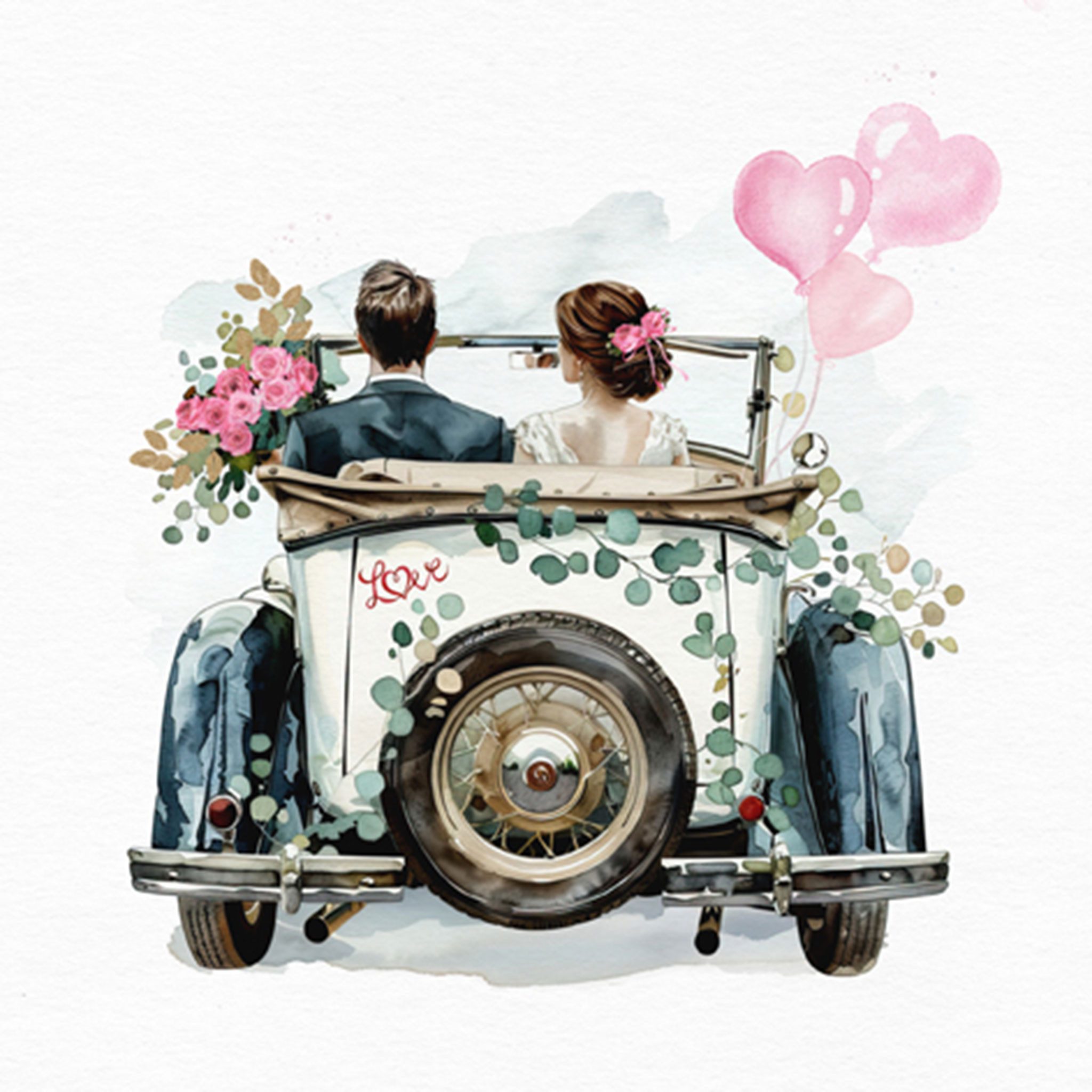VIELSEITIG EINSETZBAR: Unsere Motivservietten mit Hochzeitsauto und Blumen fügen sich harmonisch in Hochzeitsdeko, Verlobungsfeiern, Polterabende oder romantische Dinner ein. Auch
