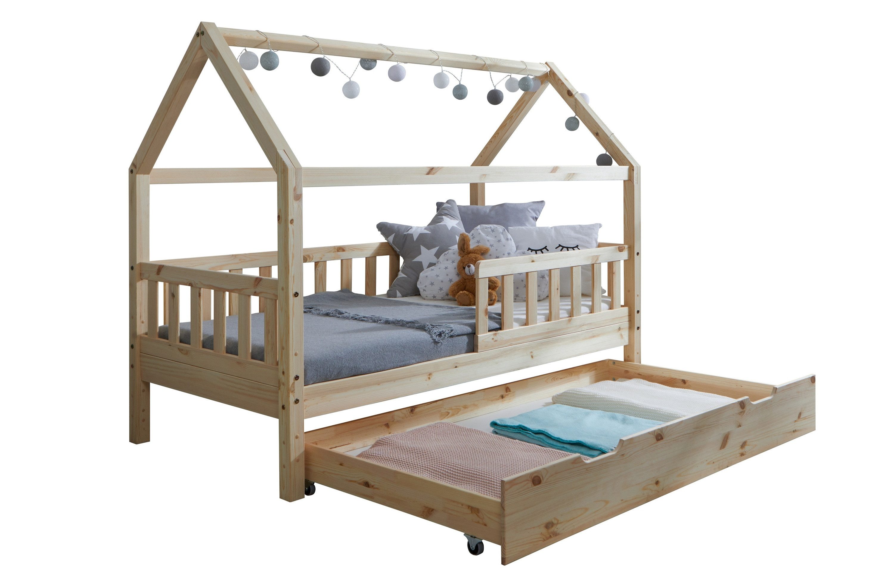 Art Lattenrost | Hausbett inkl. Rollrost, Rausfallschutz und Schubkästen, Montagematerial und Montageanleitung (ohne Dekoration) |