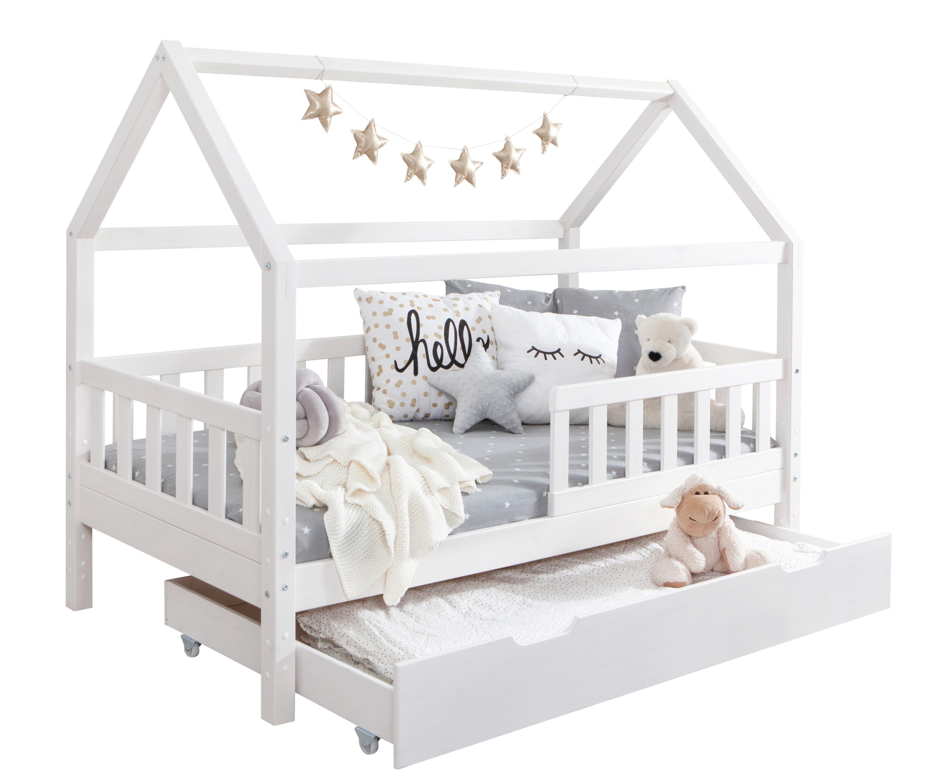 Lieferumfang | Hausbett inkl. Rollrost, Rausfallschutz und Schubkästen, Montagematerial und Montageanleitung (ohne Dekoration) |