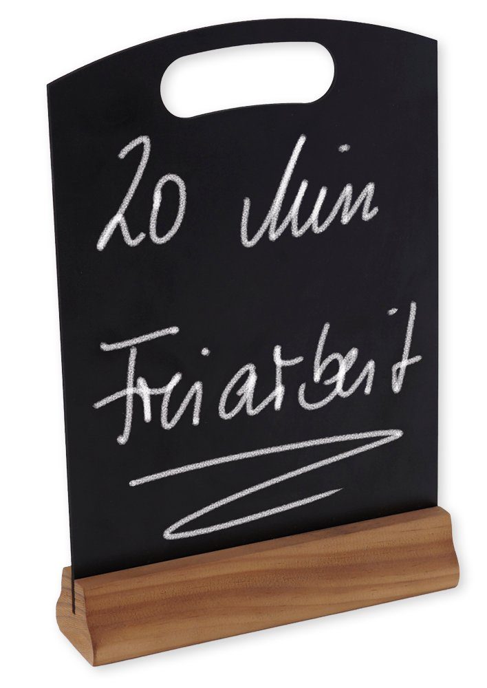 Tafel mit Grifföffnung und stabilem Standfuß aus Echtholz.