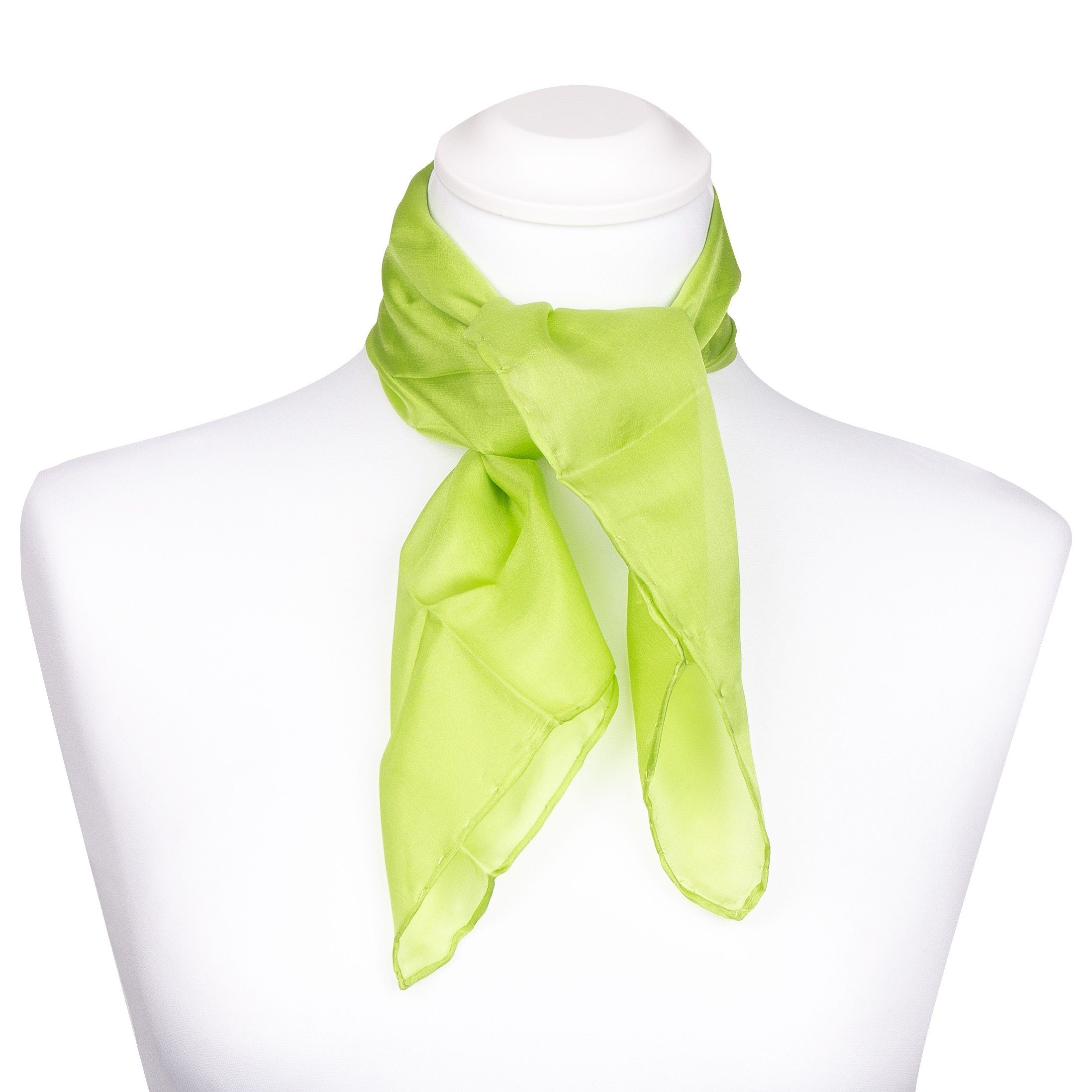 Hochwertiges grünes Nickituch in der speziellen Farbe Maigrün. Das maigrüne Nickituch - eher etwas hellere Grün - besteht zu 100% aus echter reiner Seide. Das Nickituch in der Farbe Maigrün misst ca. 55x55 cm und ist das perfekte Accessoire für verschiedene Anlässe. Tragen Sie das Nickituch nicht nur als Halstuch, sondern auch modern als Kopftuch, Haarband oder als schickes Tuch um das Handgelenk gewickelt. Die Ränder des Tuches wurden sorgfältig von Hand umgenäht (handrolliert).