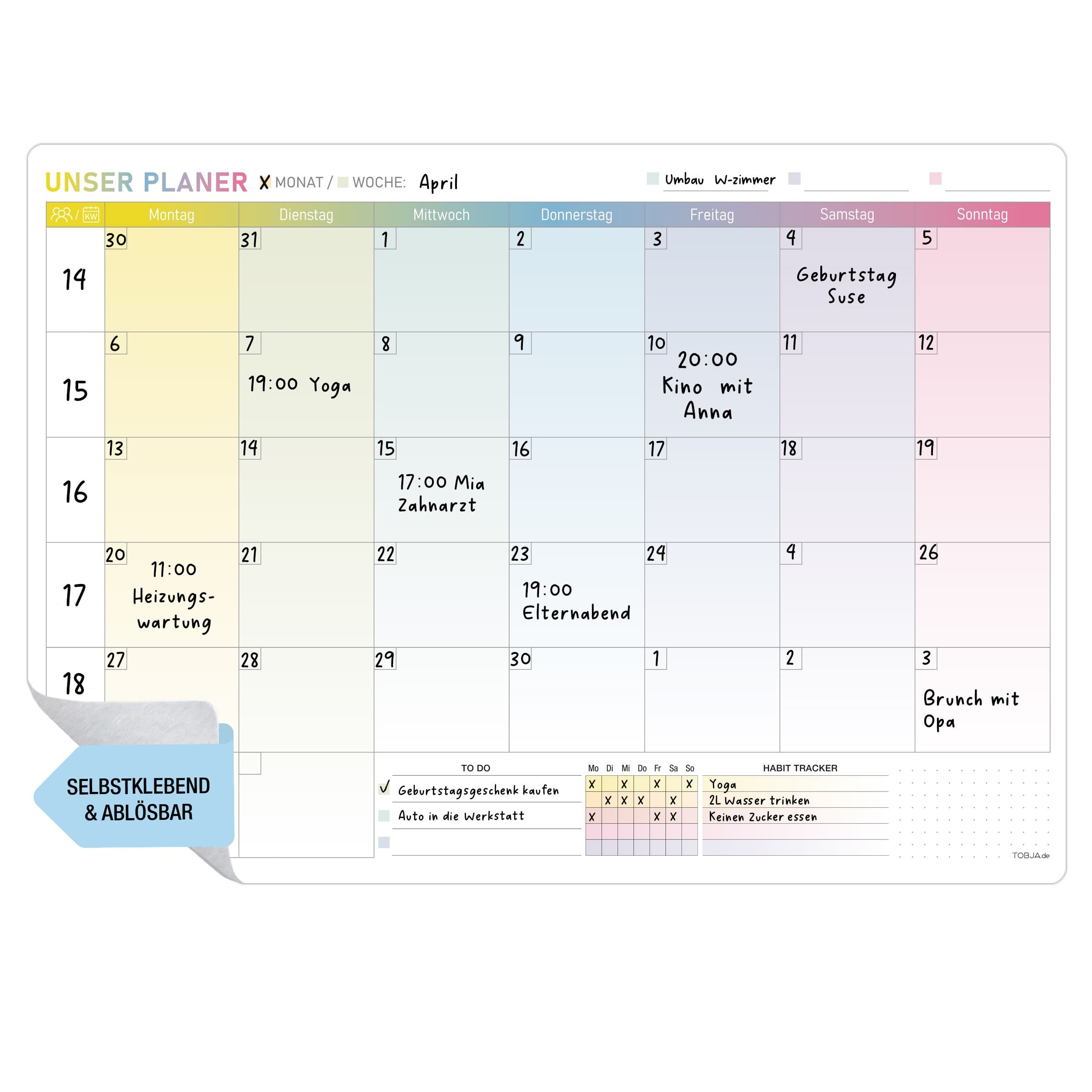 Mit unserem hochwertigen Monatsplaner A3 organisieren Sie Ihren Alltag stilvoll und effizient! Diese selbstklebende Whiteboard-Planungstafel haftet auf nahezu allen glatten Oberflächen wie Wänden, Türen, Kühlschränken oder Fliesen – rückstandslos entfernbar und immer wieder verwendbar.