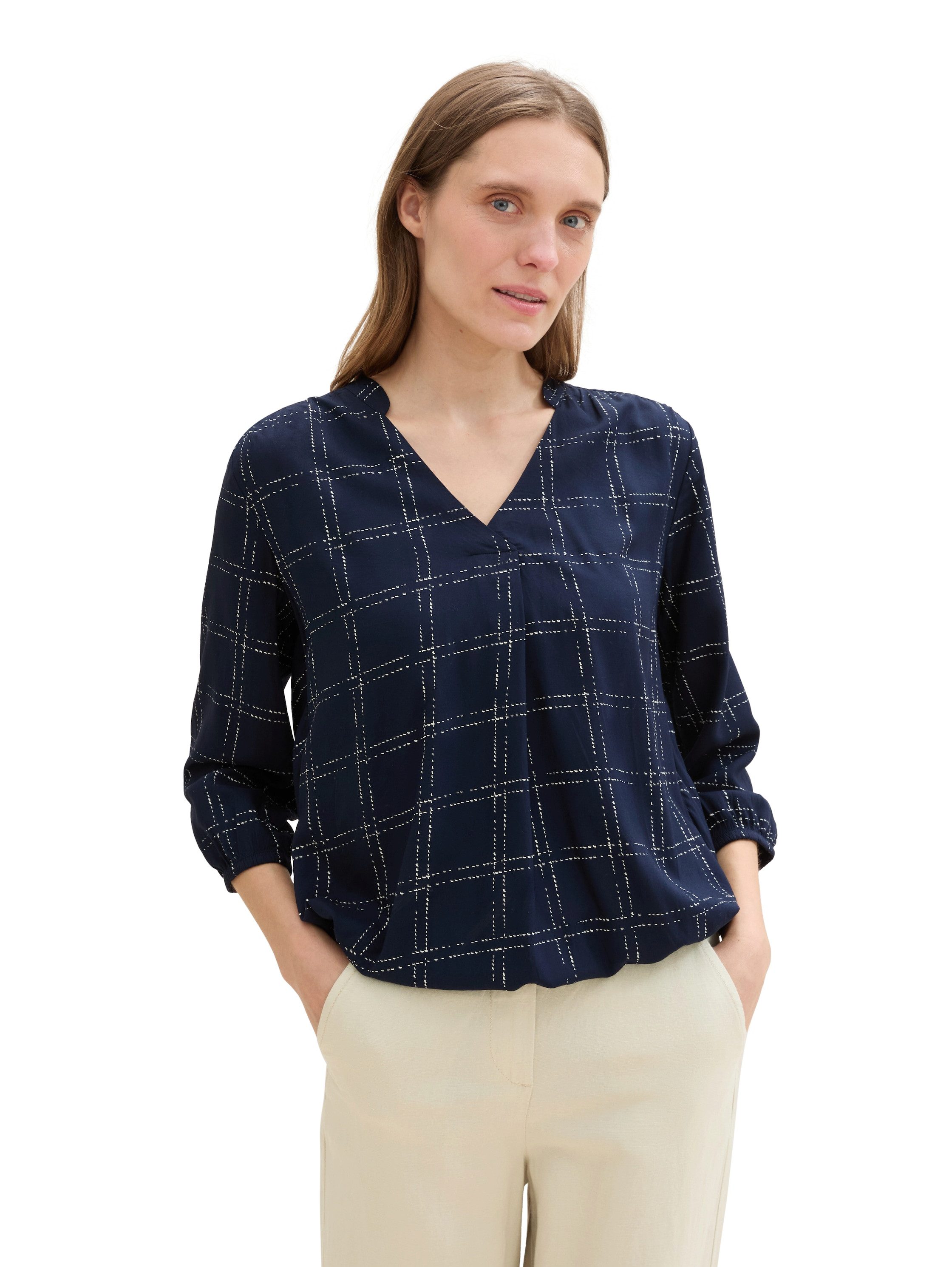 Mit der Langarmbluse von TOM TAILOR lassen sich schnell neue Outfits kombinieren. Durch den Print wirkt sie sowohl locker als auch frisch. Diese Bluse hat einen V-Ausschnitt und ist taillenbedeckend sowie basic geschnitten und umspielt deinen Oberkörper locker.
