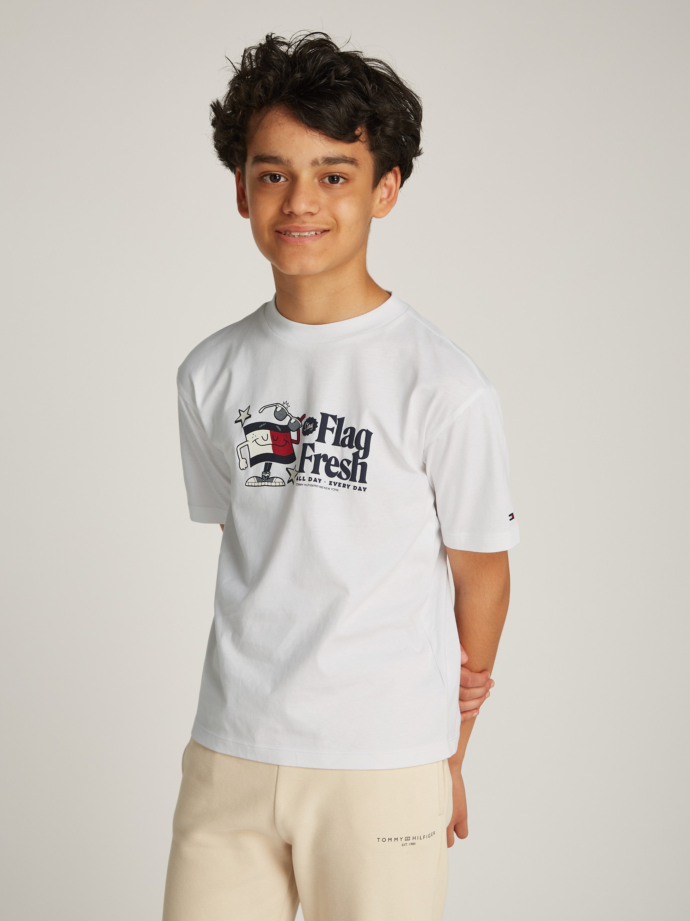 Probieren geht über kopieren: Mit diesem T-Shirt »FLAG FUN TEE SS« von Tommy Hilfiger erfinden Teens ihren eigenen Style. Durch den Aufdruck wirkt es stylisch und cool. Die kurzen Ärmel enden in einer abgesteppten Kante. Das Shirt hat einen Rundhalsausschnitt mit Rippbündchen und ist basic geschnitten, sodass der Tragekomfort nicht zu kurz kommt.