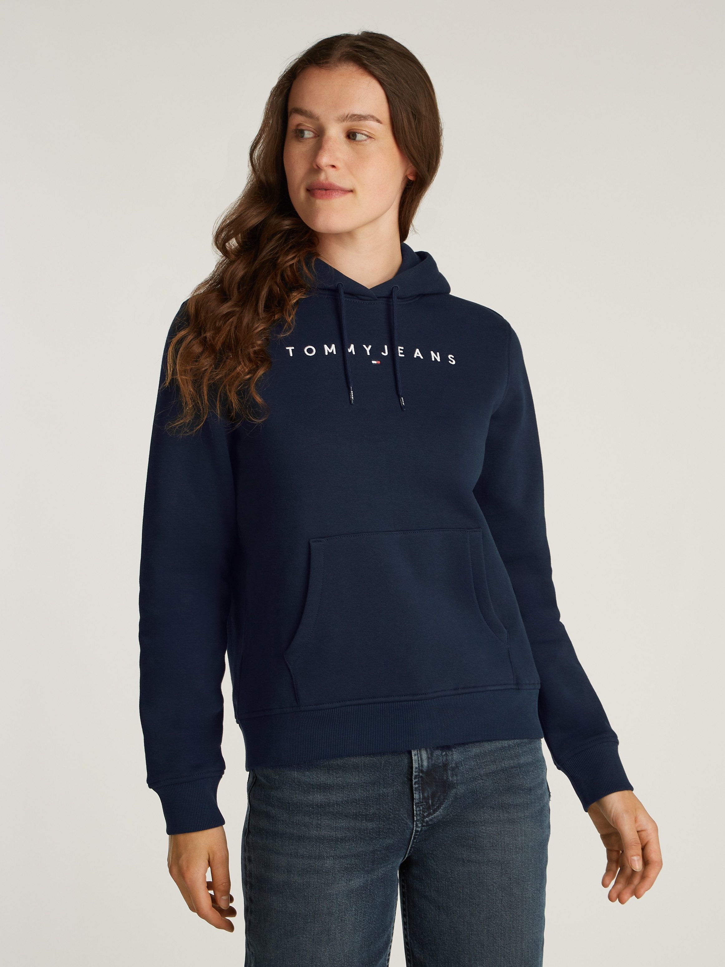 Mit dem Kapuzensweatshirt »TJW REG LINEAR HOODIE« von Tommy Jeans stellst du im Handumdrehen ein neues Outfit zusammen. Die langen Ärmel enden in einem Rippbündchen, das für guten Sitz sorgt. Dieses Sweatshirt hat einen Rundhalsausschnitt und ist hüftlang sowie basic geschnitten, sodass dein Oberkörper dezent in Szene gesetzt wird. Am Bauch ist eine Kängurutasche aufgenäht, in der du dir deine Hände wärmen kannst und die gleichzeitig lässig aussieht.