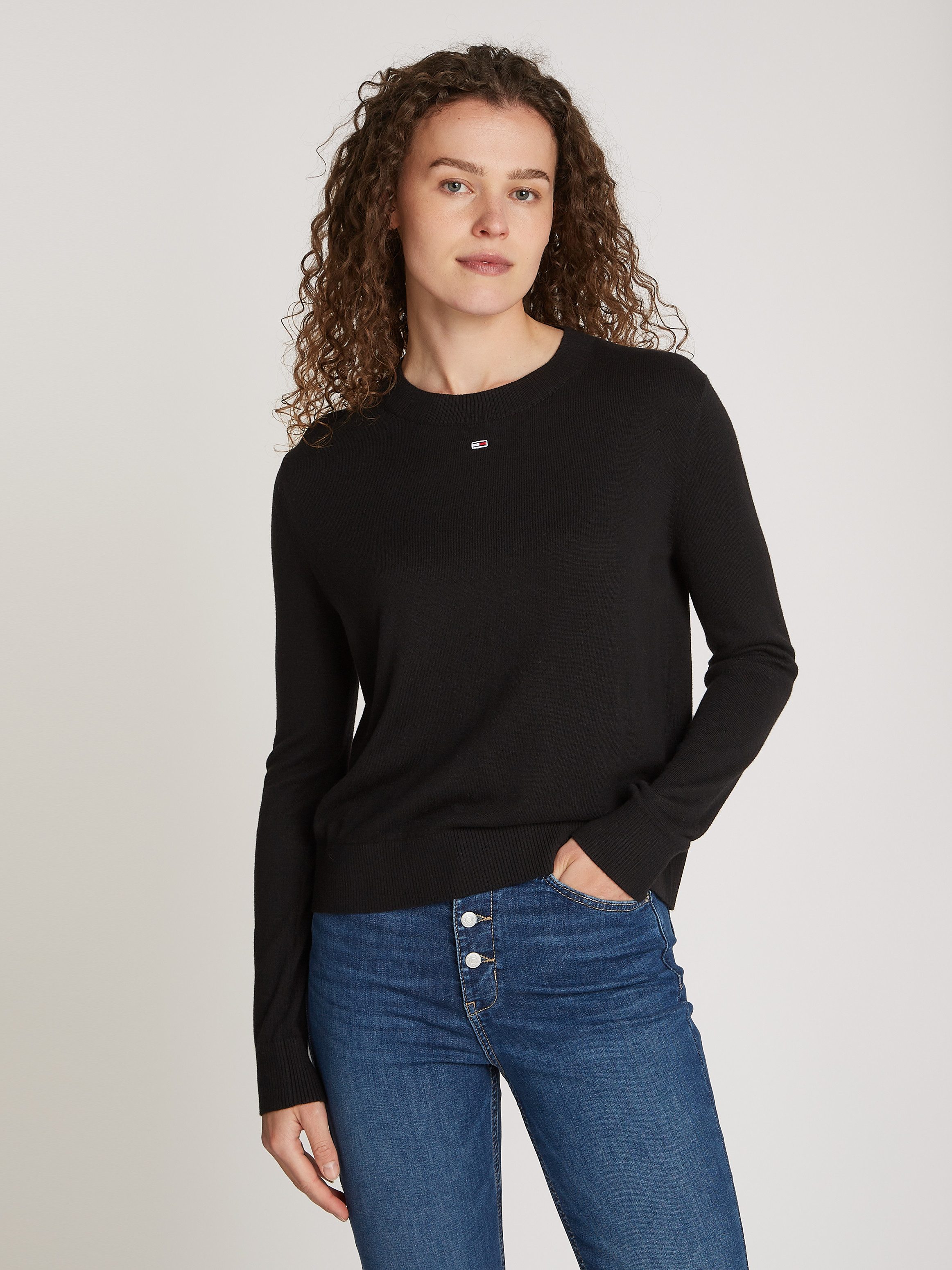 Mit dem Strickpullover »TJW ESSENTIAL CREW NECK SWEATER« von Tommy Jeans stellst du im Handumdrehen ein neues Outfit zusammen. Die Logostickerei sorgt für eine individuelle und trendige Note. Die langen Ärmel enden in einem Rippbündchen, das für guten Sitz sorgt. Dieser Pullover hat einen Rundhalsausschnitt und ist hüftlang sowie.