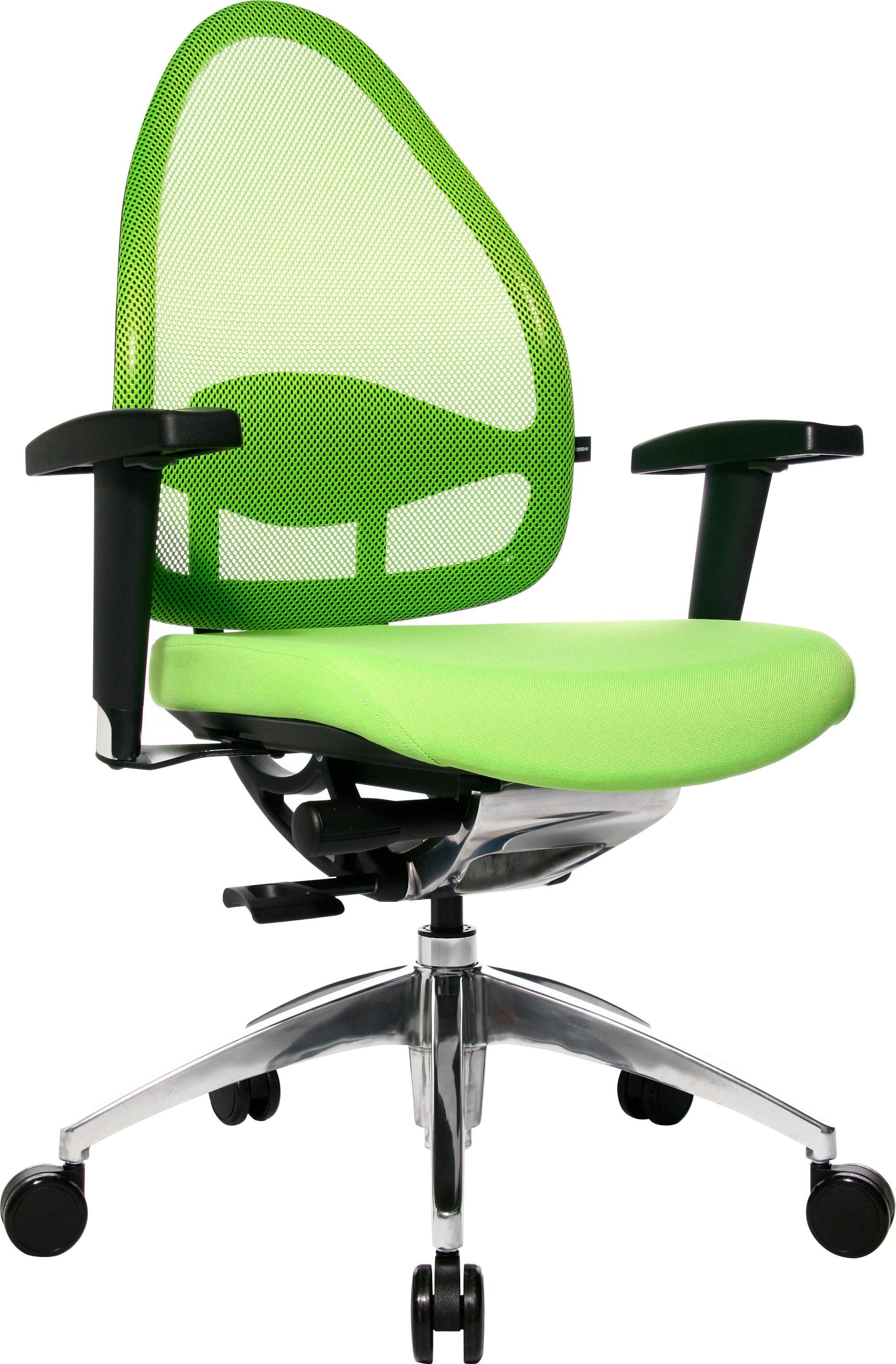 Der Bürostuhl »Open Base 10« von TOPSTAR mit stufenloser Sitzhöhenverstellung sorgt auch an langen Arbeitstagen für ein bequemes Sitzgefühl. Er zeichnet sich durch ein modernes Design aus und begeistert mit seiner angesagten Netzoptik. Erhältlich in verschiedenen Farben, bietet der Drehstuhl Spielraum für persönliche Einrichtungswünsche. Mit seinem bequemen Muldensitz samt integriertem Body-Balance-Tec®-Gelenk überzeugt er mit hohem Komfort. Ausgestattet mit einer S-Form-Rückenlehne inklusive Lendenwirbelunterstützung fördert der Schreibtischstuhl das ergonomische Sitzen. Für eine optimale Luftzirkulation ist er mit einem atmungsaktiven Stoff im Rückenbereich versehen. Damit der Stuhl individuell an die Körpergröße angepasst werden kann, besitzt er eine stufenlose Sitzhöhenverstellung. Durch lastabhängige und gebremste Sicherheitsdoppelrollen lässt er sich gut auf Teppichböden verwenden. Gestaltet den Arbeitsplatz komfortabel: der Bürostuhl »Open Base 10« von TOPSTAR mit stufenloser Sitzhöhenverstellung.