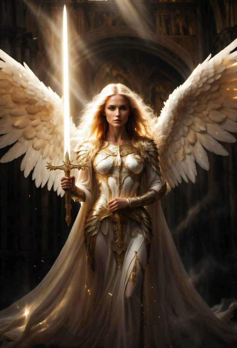Fantasy Himmlische Engel Weiblicher Erzengel Goldene Flügel Leinwand (Leinwandbild XXL), Farben: Gelb, Braun, Schwarz, Weiß, Grau -Größe: 20x30cm