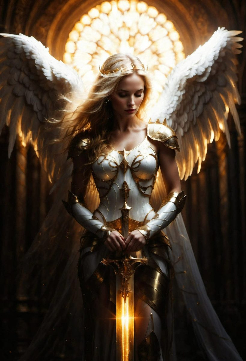 Fantasy Himmlische Engel Weiblicher Erzengel Goldene Flügel Leinwand (Leinwandbild XXL), Farben: Gelb, Braun, Schwarz, Weiß, Grau -Größe: 20x30cm