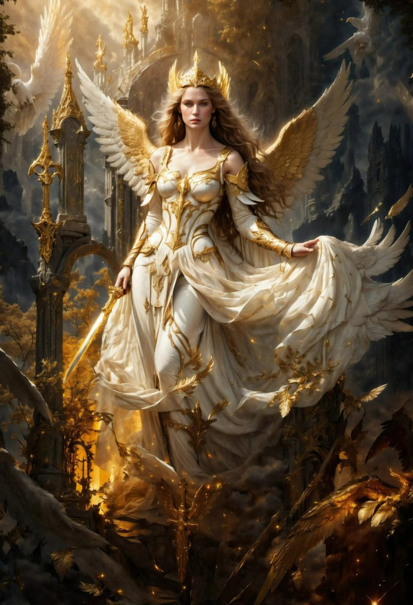 MotivFantasy Himmlische Engel Weiblicher Erzengel Goldene Flügel Leinwand