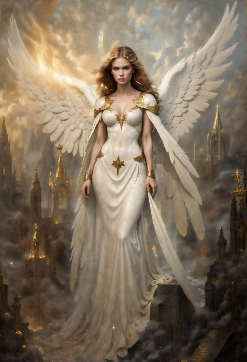 Fantasy Himmlische Engel Weiblicher Erzengel Goldene Flügel Leinwand