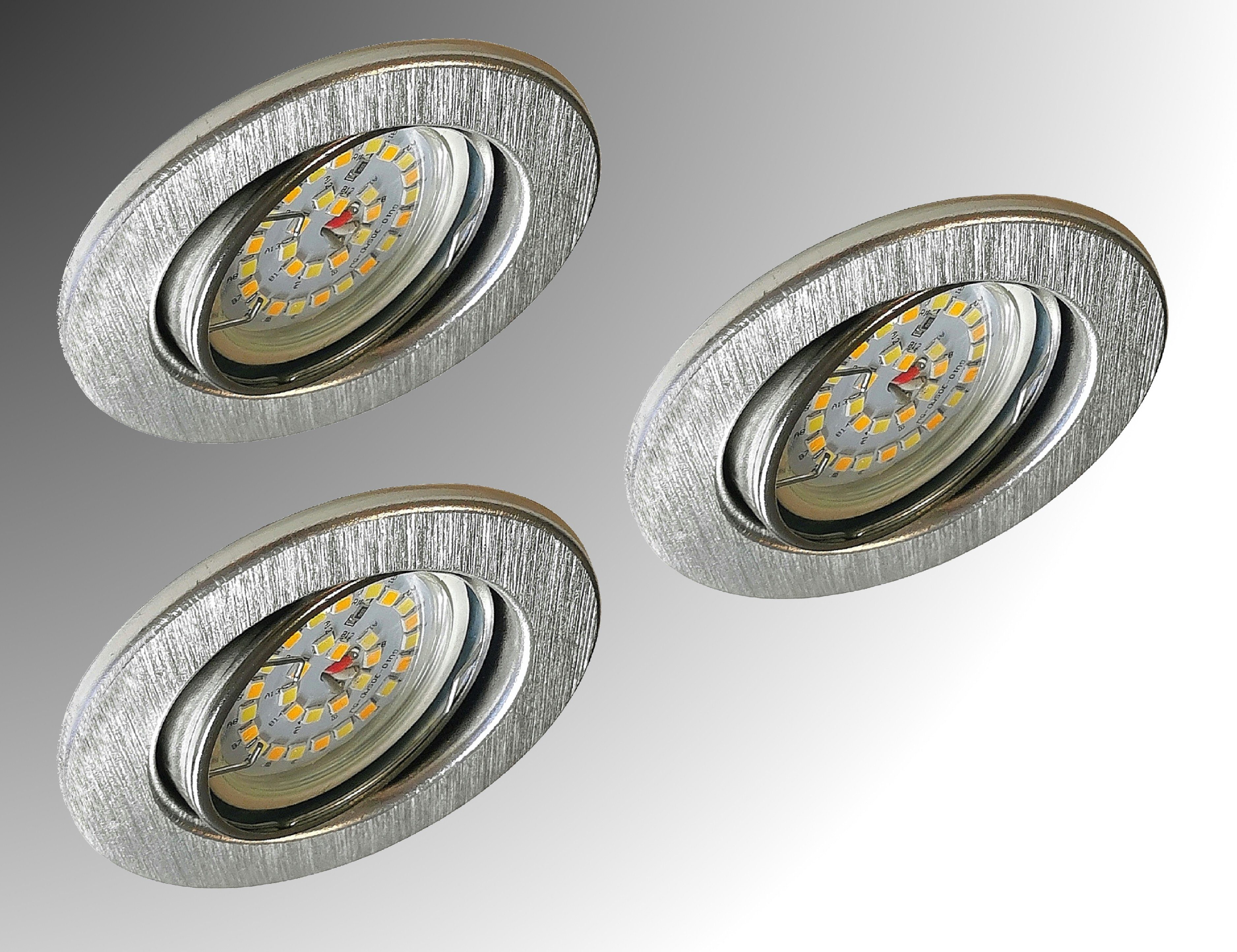 Leuchtmittel | 3er Set 6729-039M6KSD LED-Einbaustrahler Aluminium gebürstet inkl. 3x 5 Watt CCT Farbtemperatur Steuerung 2700K-4000K-6500K LED Modul |
