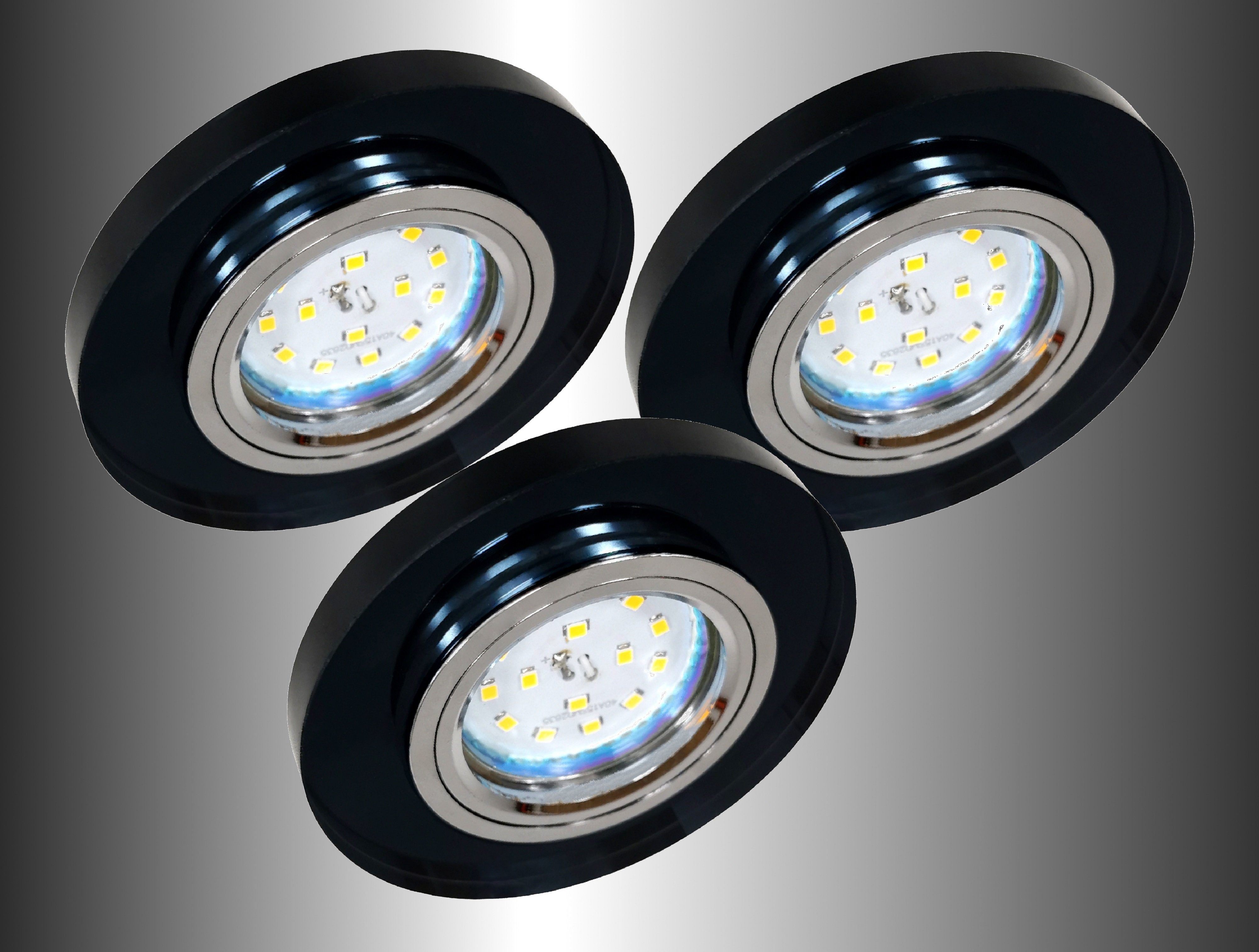 Leuchtmittel | 6736R-03G6KSDAK 3er Set *BLACK CRYSTAL* LED Deckenstrahler in Rund aus Schwarzglas (Handgeschliffen) & Alu inkl. 3x 3-Stufen dimmbar GU10 LED Leuchtmittel 6000K Tageslichtweiß |