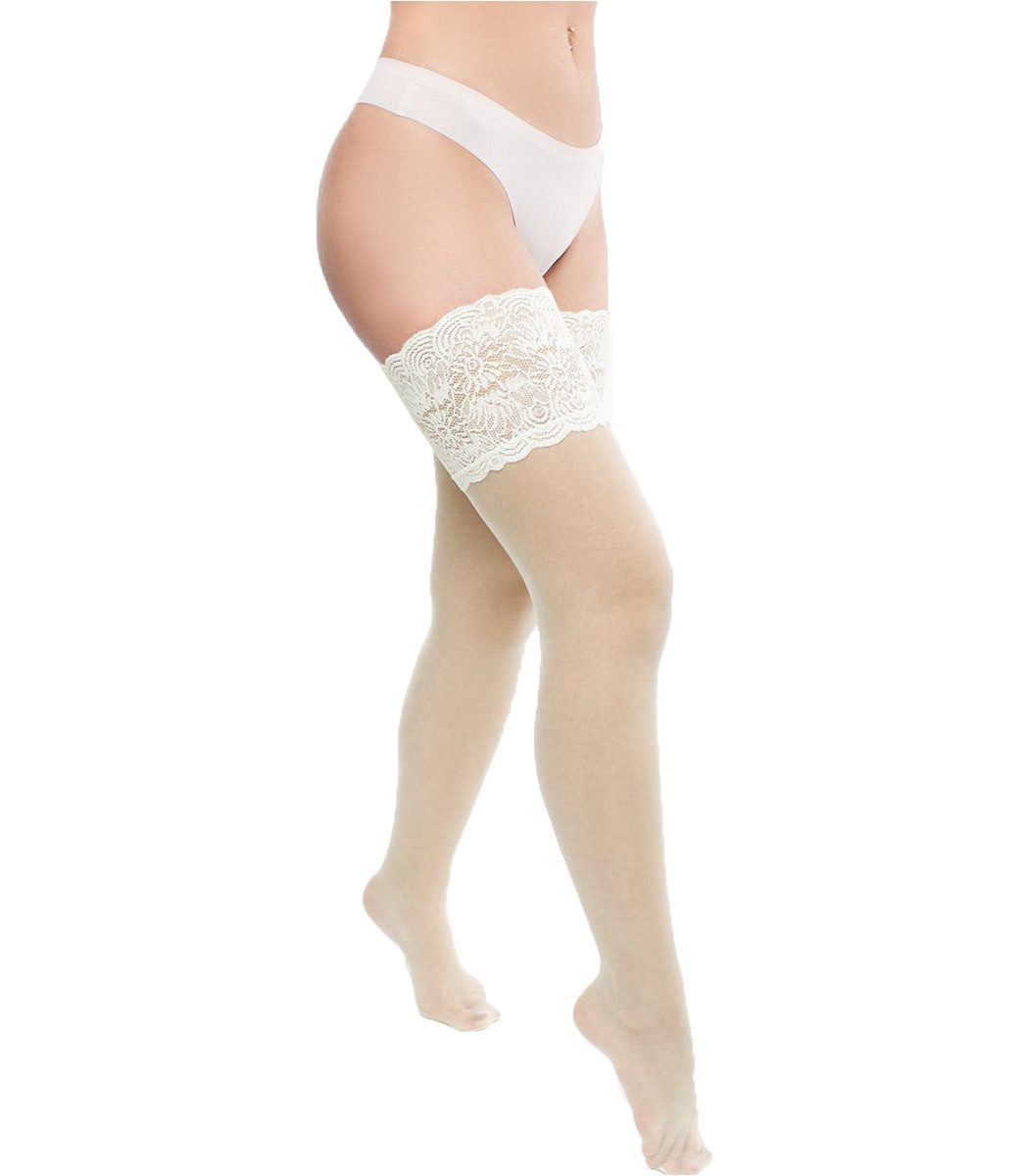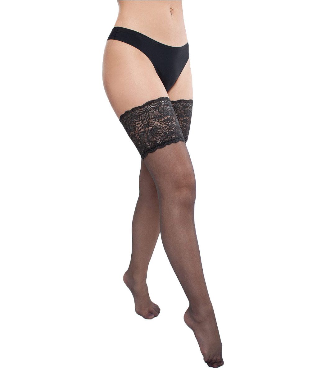 Die halterlosen Strümpfe Carlotta 30DEN aus der Kollektion vom Meister der Verführung - dem italienischen Hersteller Trasparenze. Sie zeichnen sich durch ein dekoratives, 14 cm breites Spitzenabschlussband mit doppeltem Silikonstreifen aus, das dafür sorgt, dass die Strümpfe nicht verrutschen und sicher an ihrem Platz bleiben. Die dezent verstärkte Fußspitze mit weicher Spitzennaht ermöglicht ein angenehmes Tragegefühl.