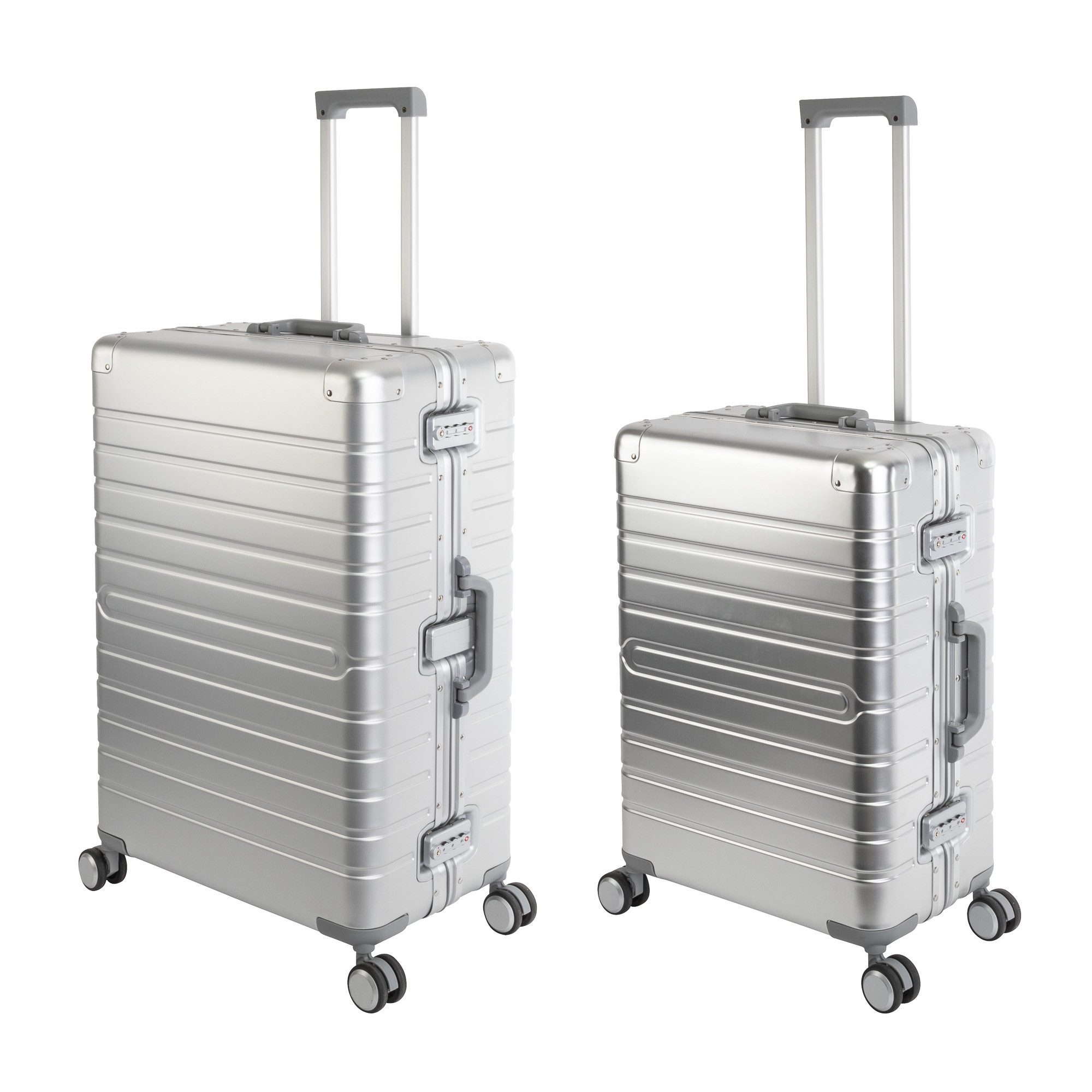 IHR PERFEKTES REISEKOFFER-SET: Der hochwertige Aluminium Kabinenkoffer (55x36x20cm) und der große Reisekoffer (75x48x29cm).