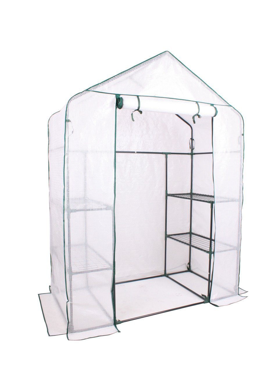 | Schneelast: 5 kg | Firsthöhe: 194 cm | Fachform: Satteldach | Material: Stahlrohrgestänke, Polyethylen | Farbe: weiß, grau | Türmaß: 152 x 75 cm (H x B) | ohne Bodenplatte | mit 4 Gitterböden | Lieferumfang: Balkongewächshaus, Stahlrohr-Gestänke |Breite | 142 cm |
