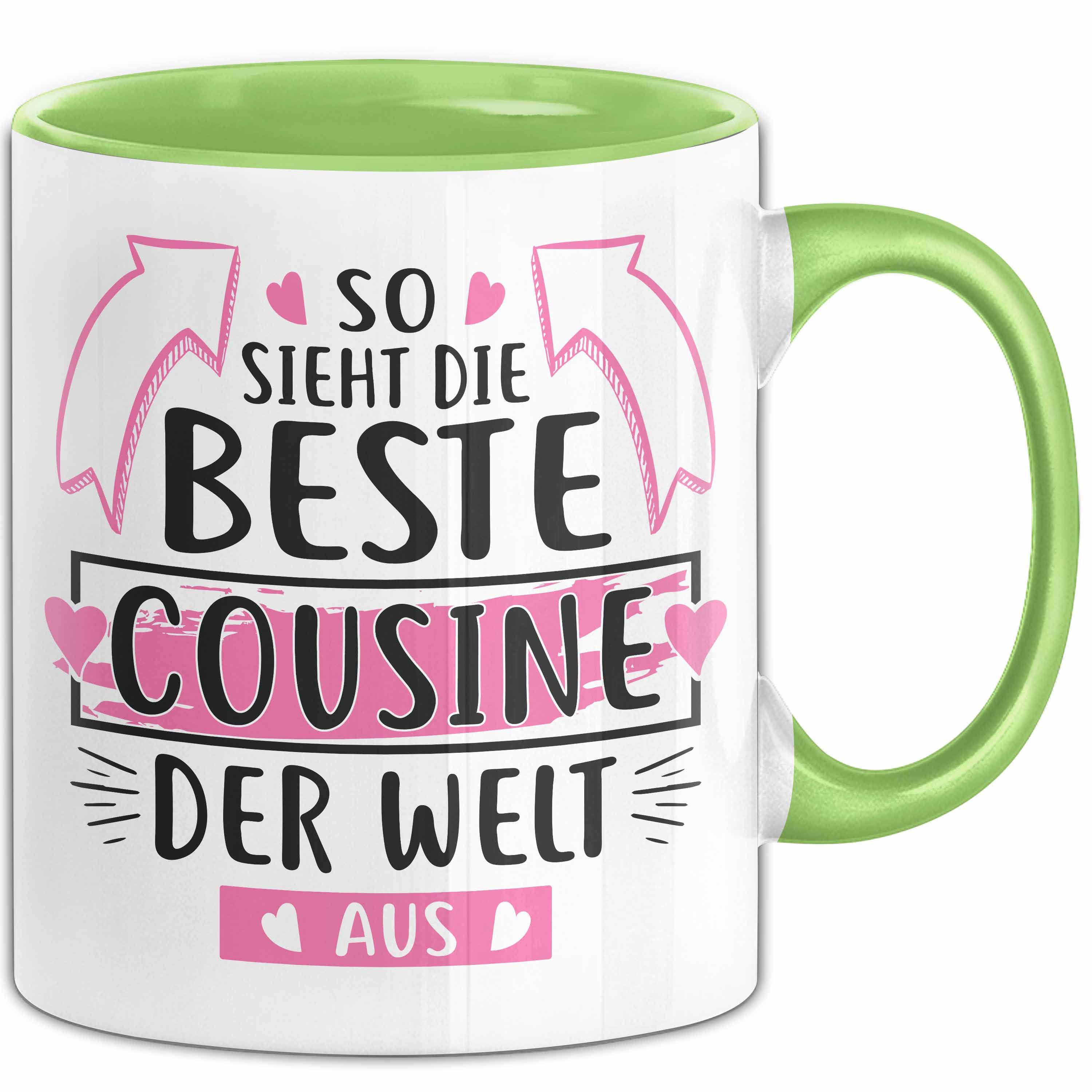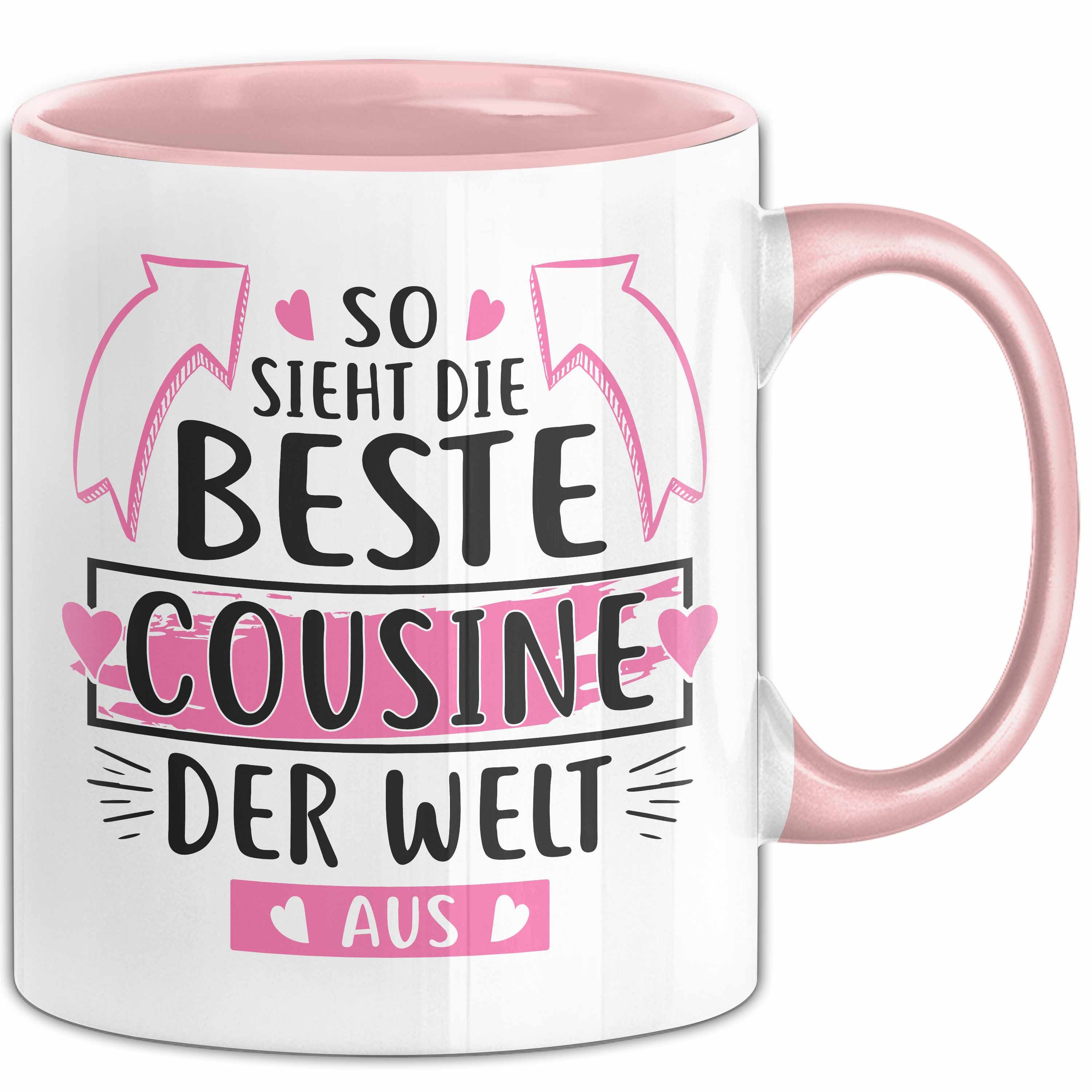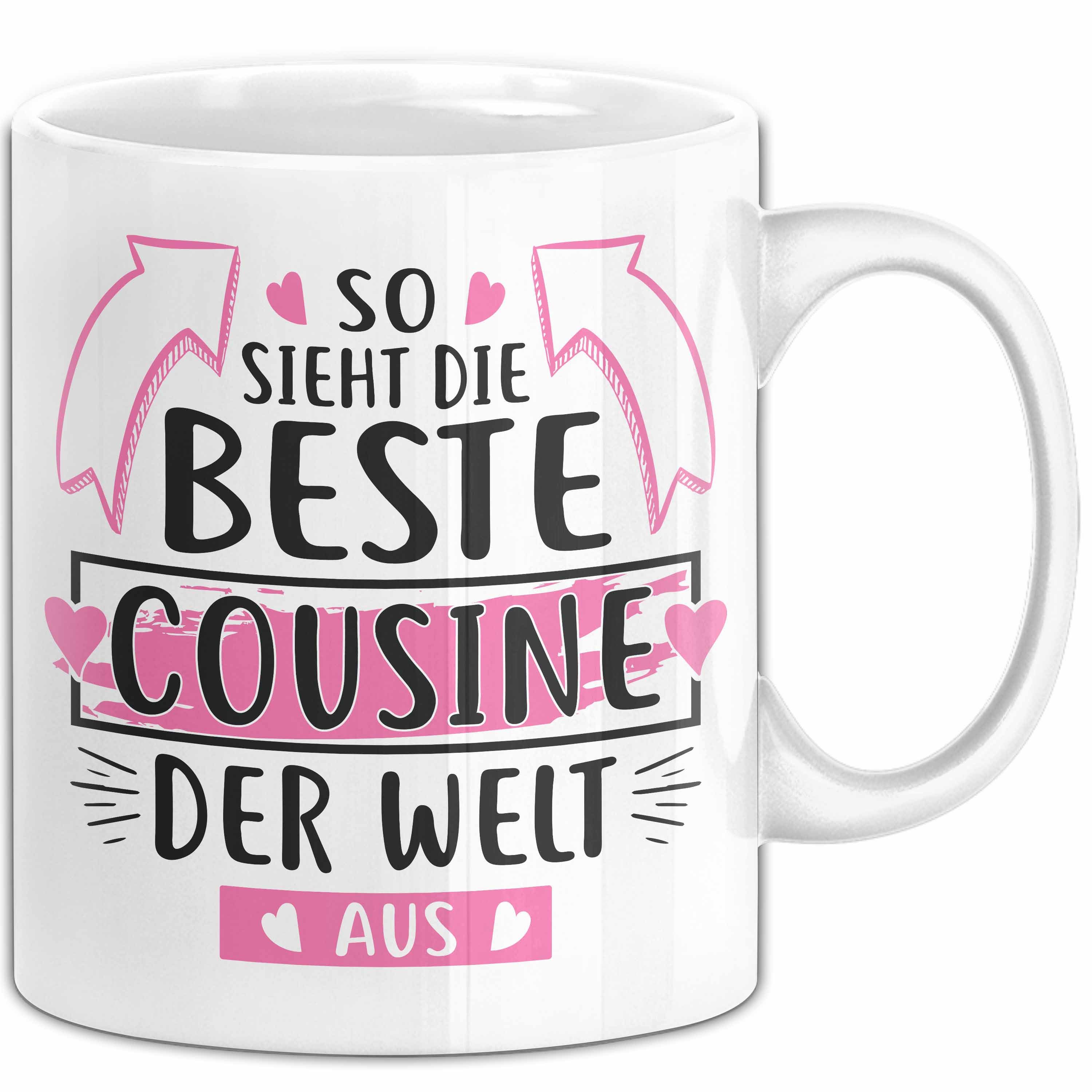 Eine liebevoll gestaltete Tasse mit dem Spruch "So sieht die beste Cousine der Welt aus". Ein wunderbares Geschenk, das die einzigartige Verbindung und die Wertschätzung für eine b