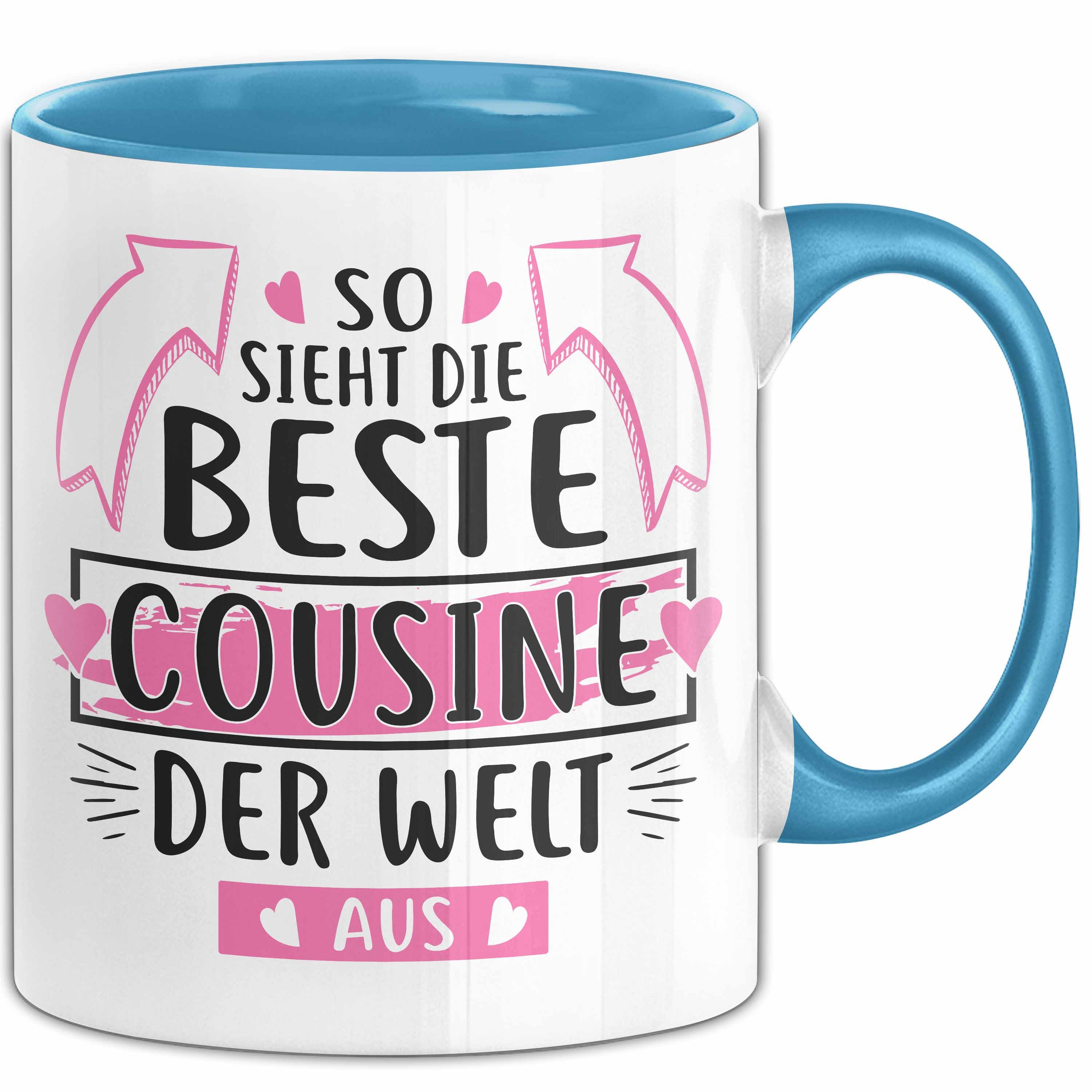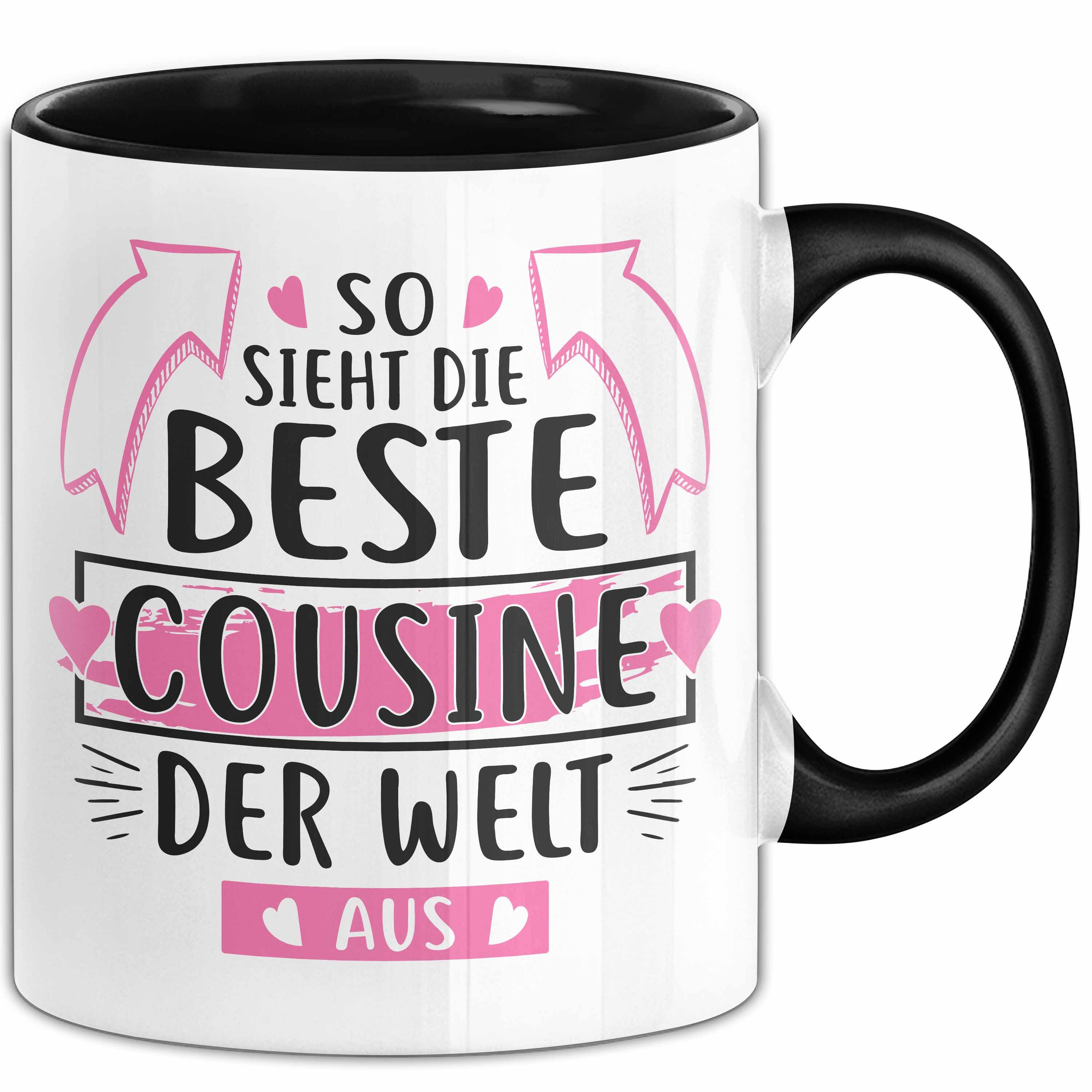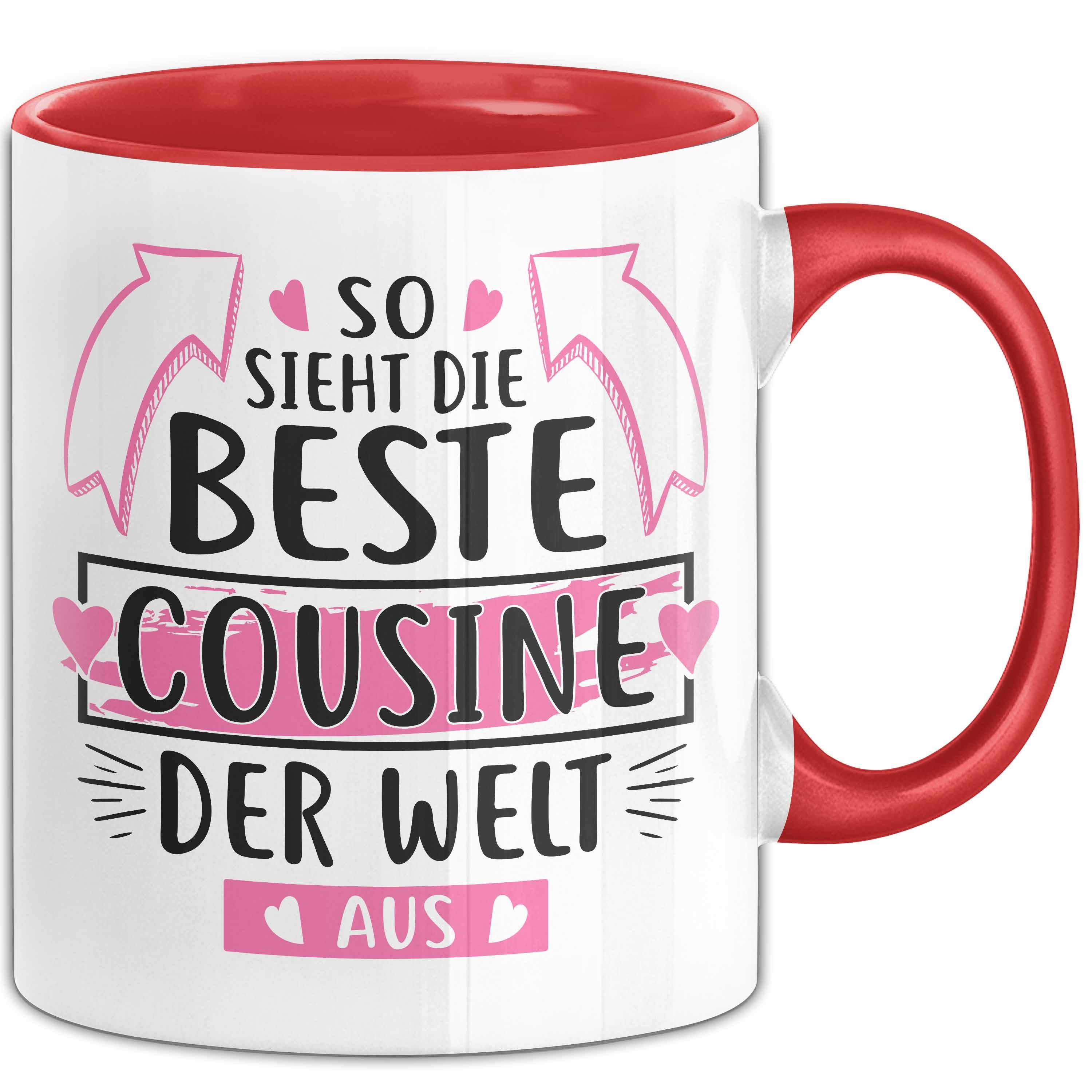 Eine liebevoll gestaltete Tasse mit dem Spruch "So sieht die beste Cousine der Welt aus". Ein wunderbares Geschenk, das die einzigartige Verbindung und die Wertschätzung für eine b