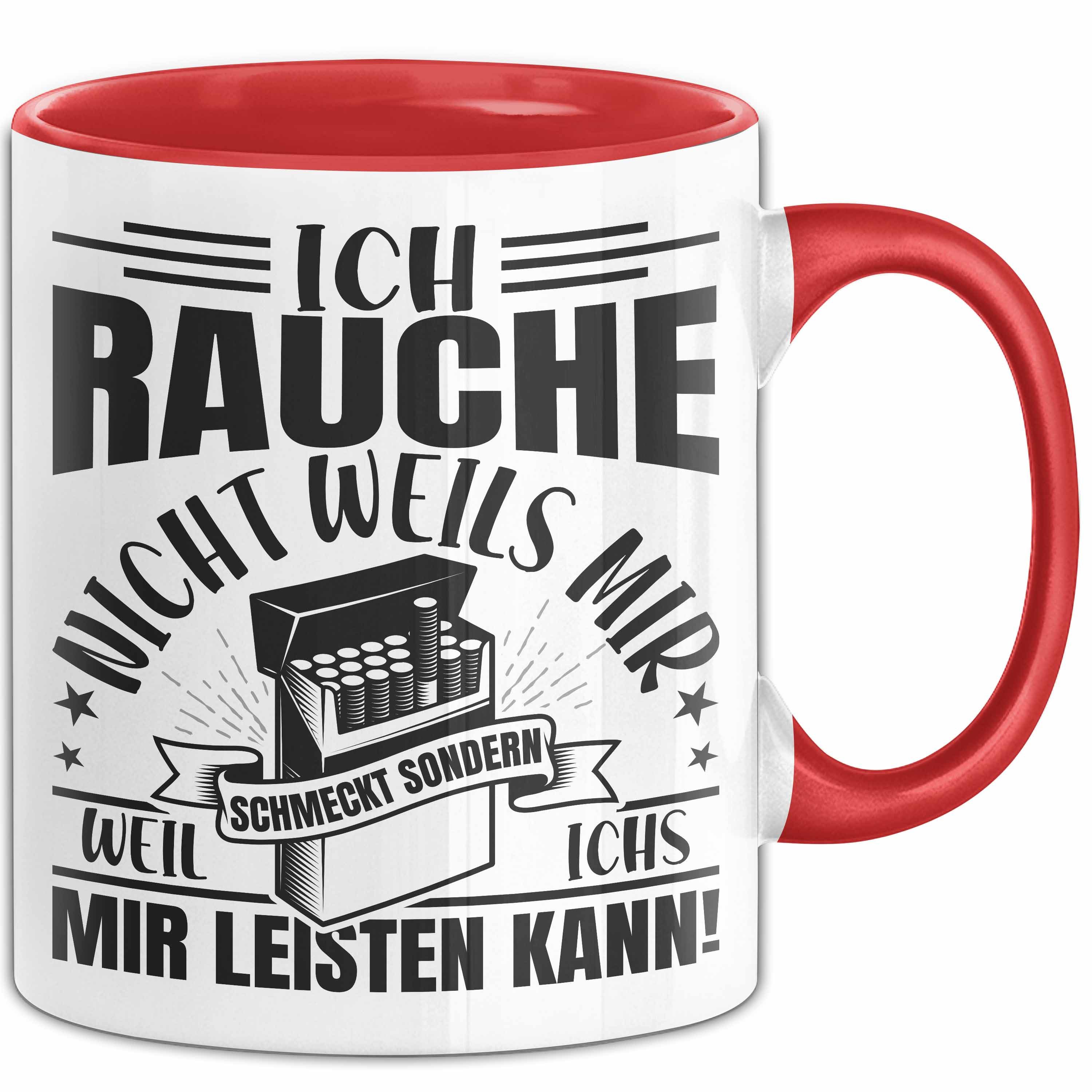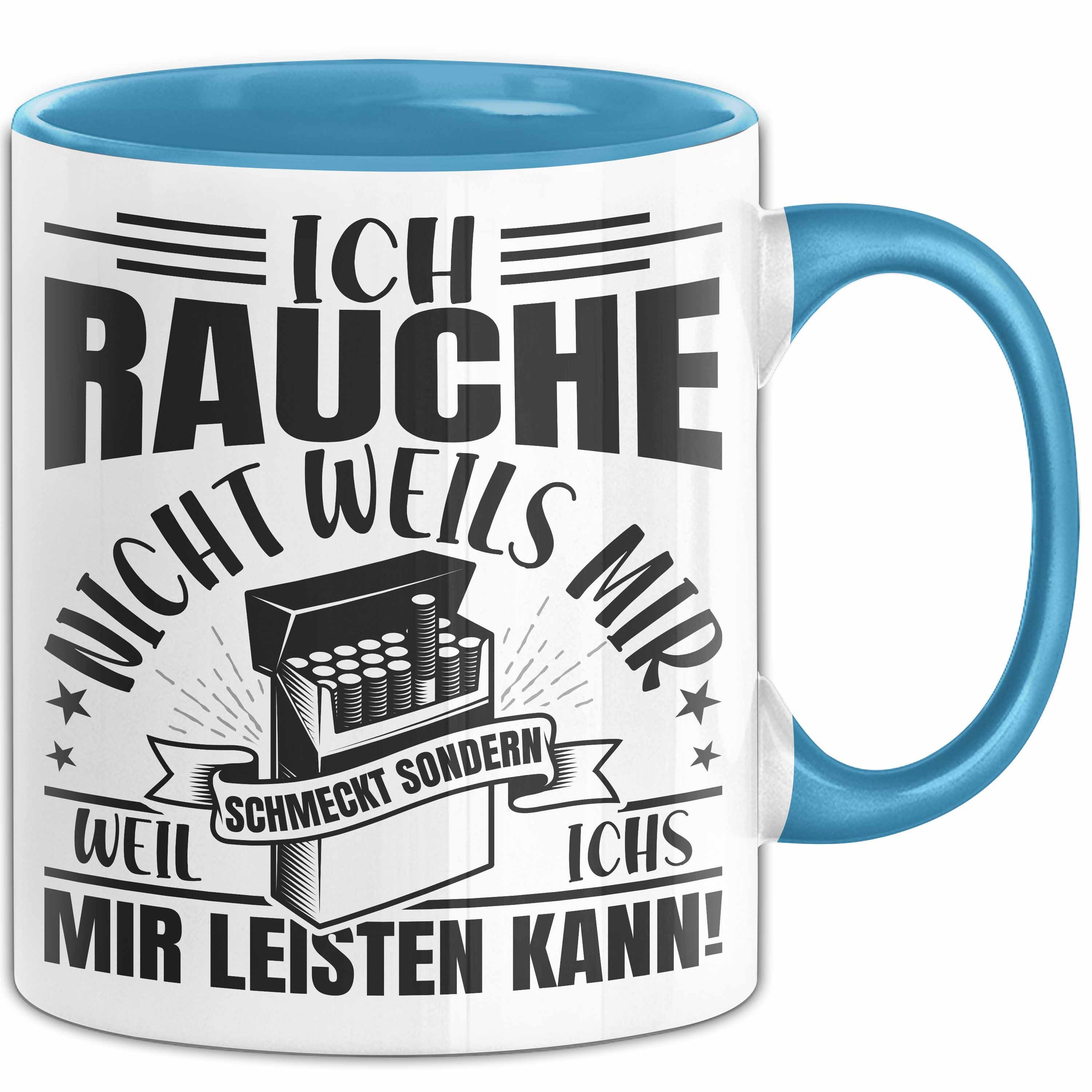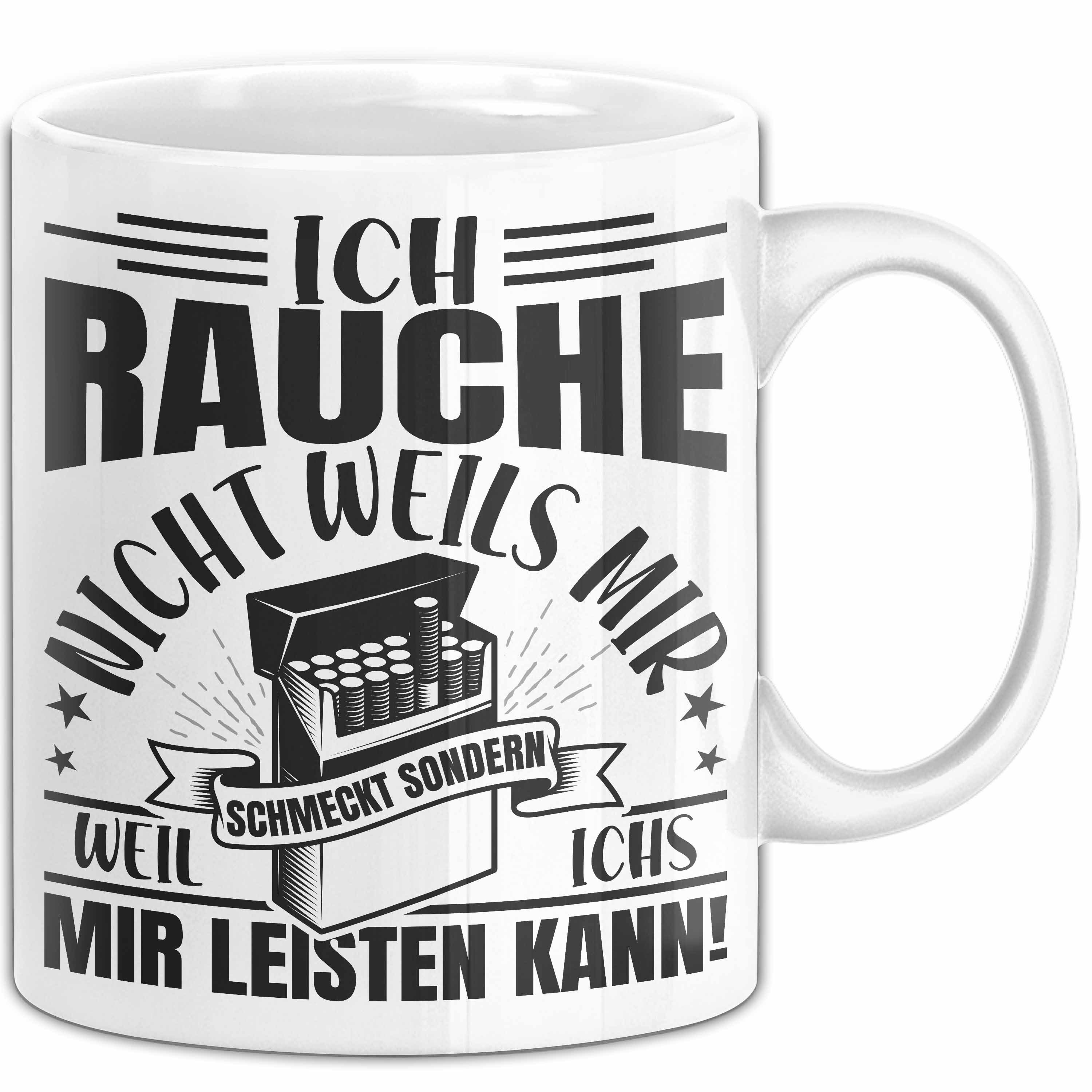 Eine Tasse für Raucher mit dem humorvollen Spruch "Ich rauche nicht, weil es mir schmeckt, sondern weil ich es mir leisten kann". Eine tolle Geschenkidee, die mit einem Augenzwinke